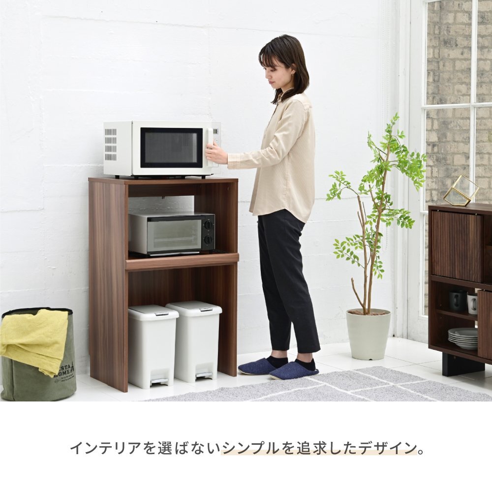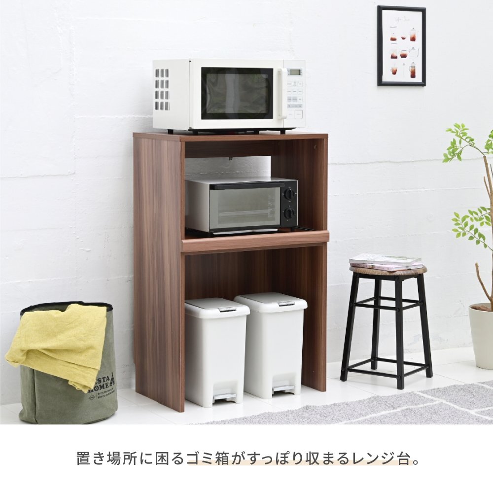 ゴミ箱の上のデッドスペースを有効活用できるキッチンラック"Mansarda"。 天板にはレンジを置くことができる他、コンセント付きのスライド棚は炊飯器やケトルなどの家電を収納するのにぴったり。 オープン部はゴミ箱だけでなく、小さめのラックなどの収納スペースとしてもおすすめです。 |