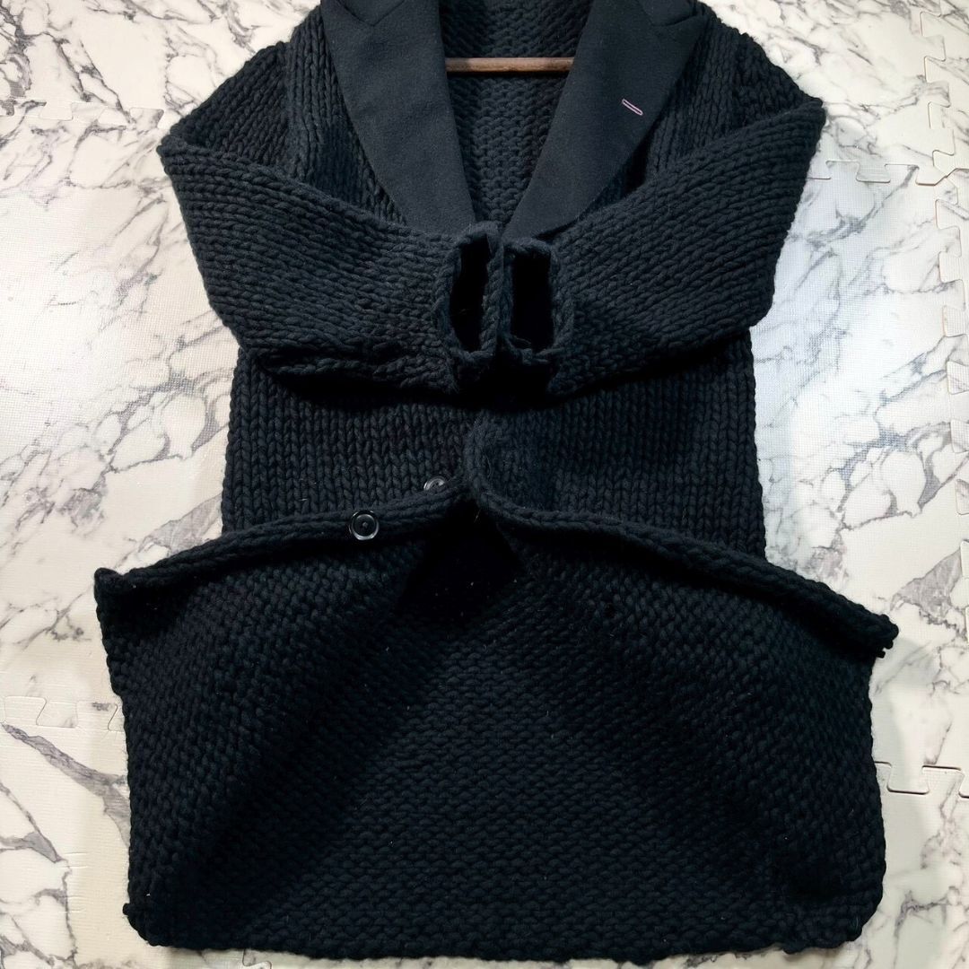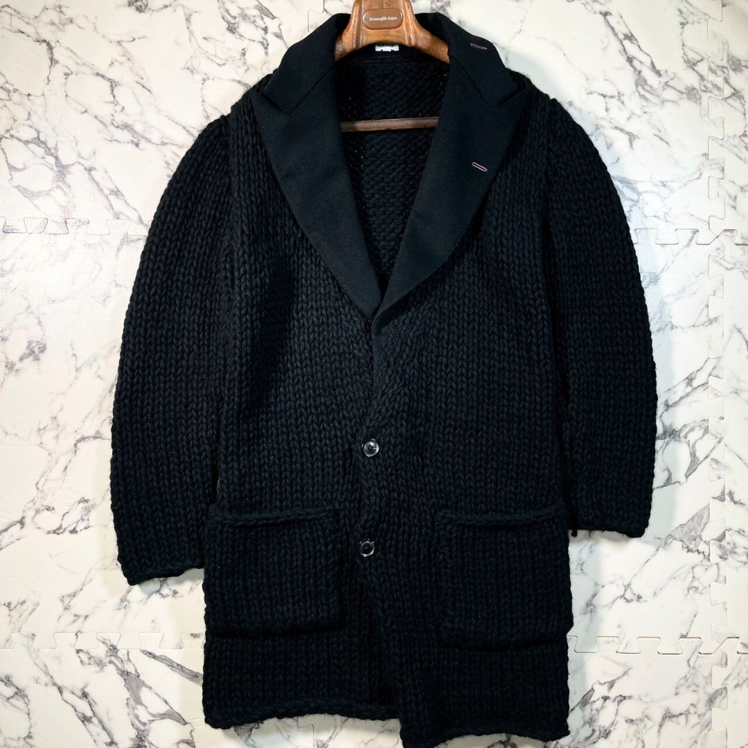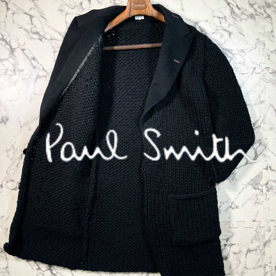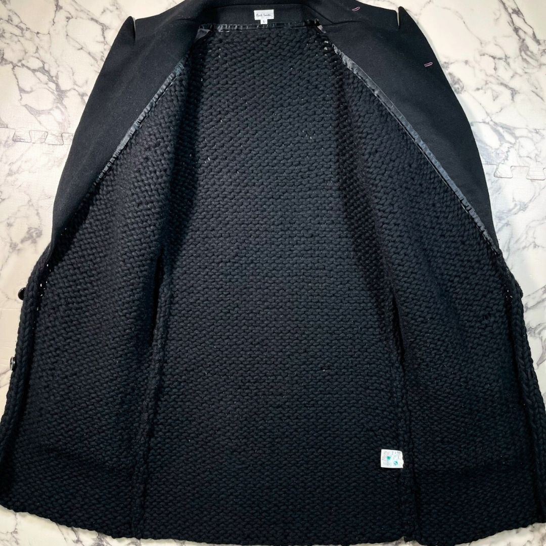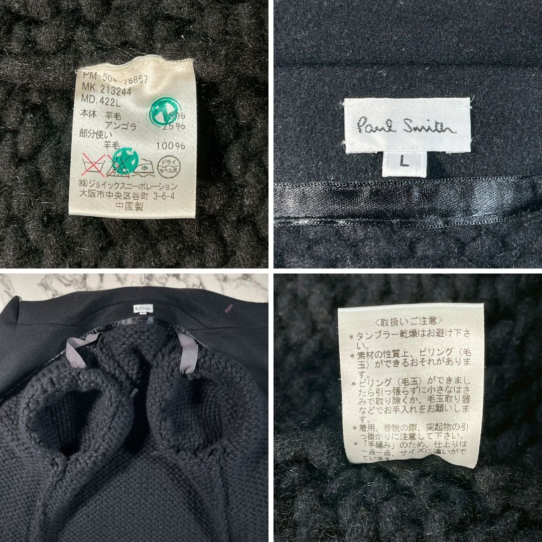 極美品/ニット編み込み/アンゴラ混(L)●ポールスミス ロング丈 チェスターコート ブラック 黒 Paul Smith メンズ 切替 アウター ウール