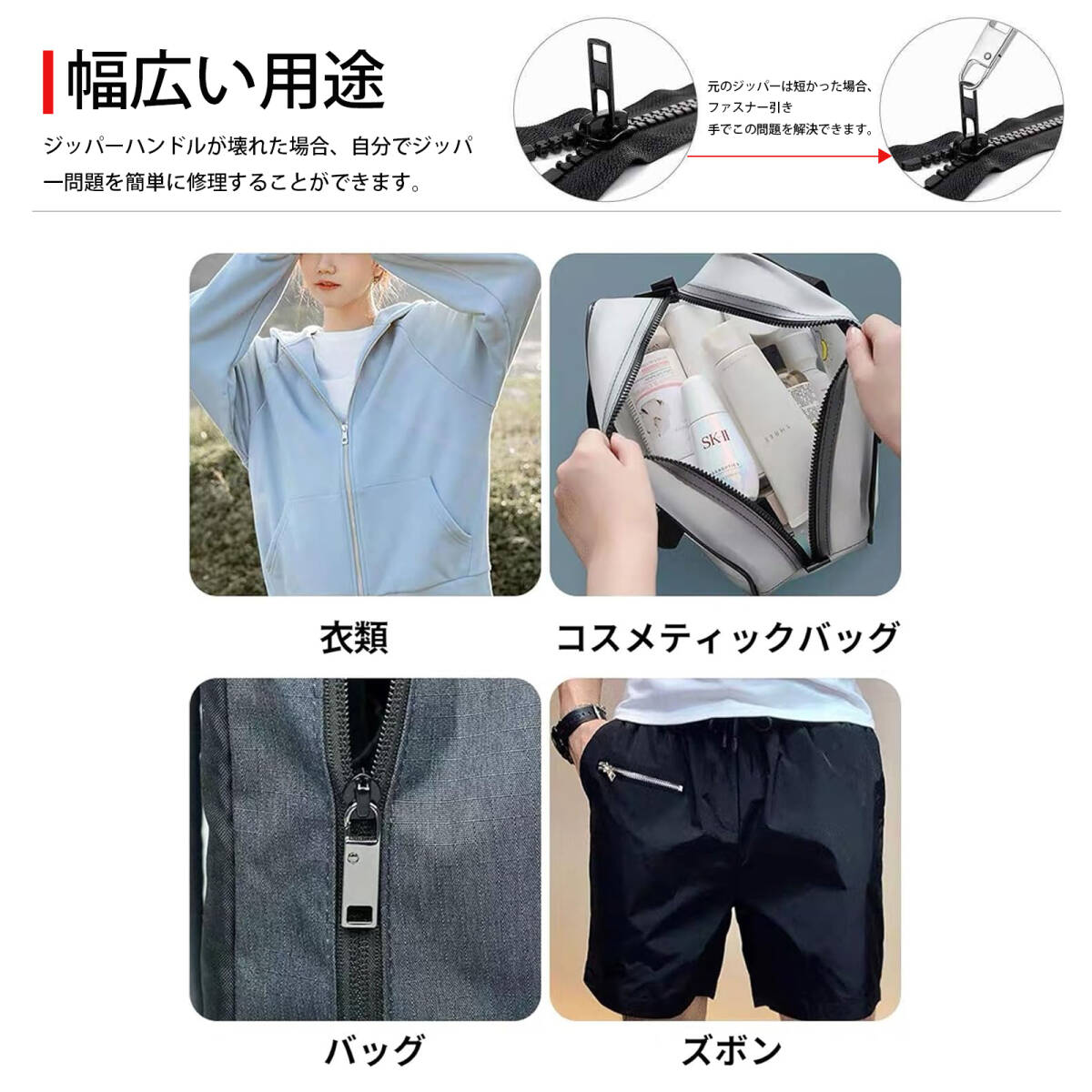 | この商品について | 1、取り付けが簡単で繰り返し使用可能:ジッパーヘッドは、ツールや縫製を必要とせず、ジッパーの部分に貼るだけで取り付けができます。そうすると、ジッパーがすぐにスムーズに動くようになります。 2、耐久性のある素材、長持ち:高品質の亜鉛合金製で、防錆性があり、表面が滑らかで手触りも良く、日常使用に耐え、長期間使用できます。 3、どこにでも適応:すべてのジッパーに対応しており、スーツケース、バックパック、衣服、財布、ジャケットなど、破損したジッパーも新しいように蘇ります。 4、スタイリッシュなデザイン:シンプルで贅沢なデザインがジッパーを引き立て、ファッションのアクセントとしても使え、取り外しや再利用が簡単です。 おすすめ:この釘なしウエスト調整ボタンを手に入れて、簡単にウエストを調整し、自信あふれるスタイルを楽しみましょう! |