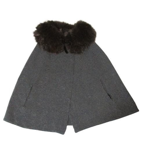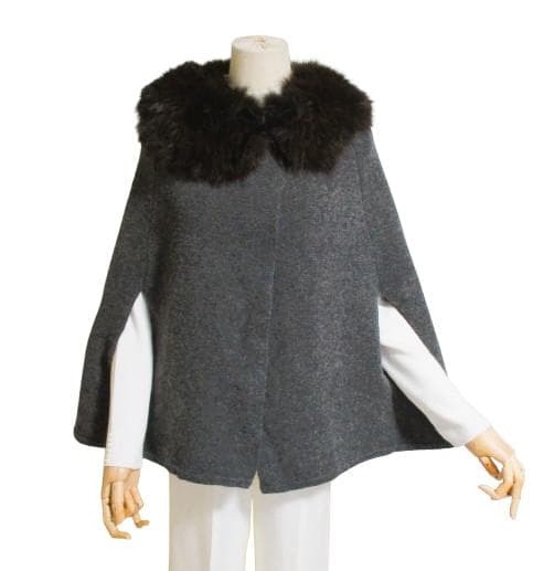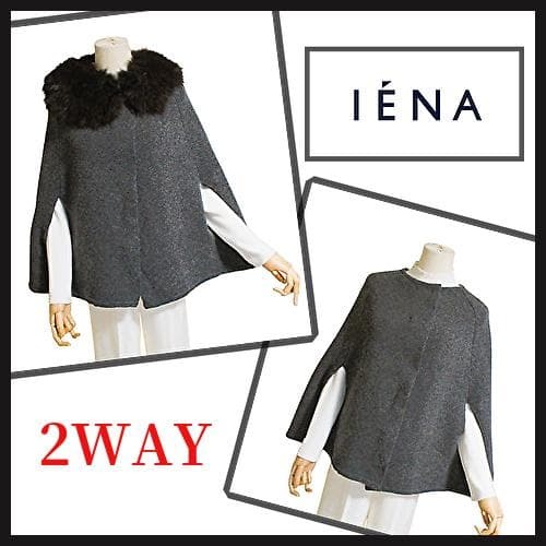 【イエナ】ニットケープ フォックスファー付け襟ポンチョ グレー マントF IENA une petites merveille ティベット 2WAYプルオーバー