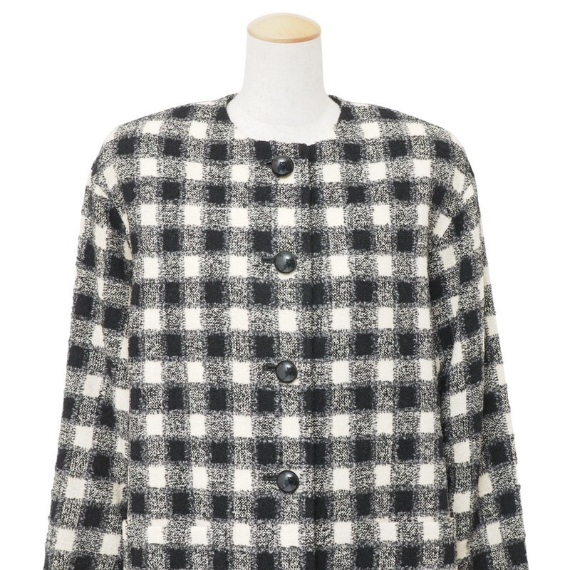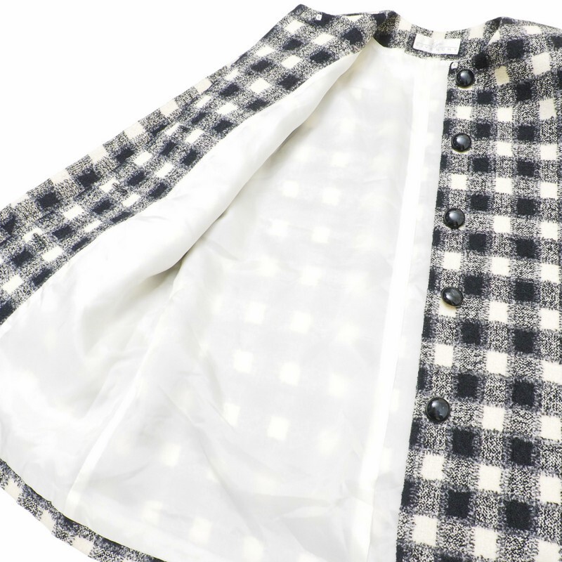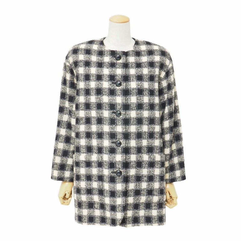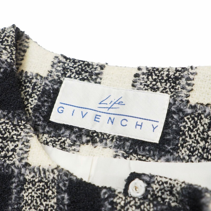 | MI3375*VINTAGE GIVENCHY ジバンシィ ツイード ノーカラージャケット ブロックチェック柄 Size 9 ブラック×アイボリー系 | |||