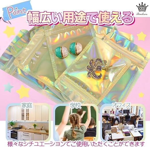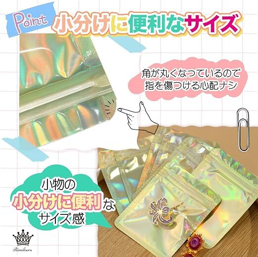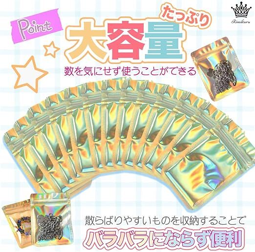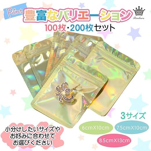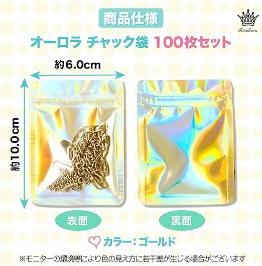 | 43. Rimikuru オーロラ チャック 袋 アルミ袋 チャック付き袋 100枚/200枚セット ゴールド ミニ ジッパー付き袋 厚手 小さい (6cm×10cm・100枚セット) | ||||