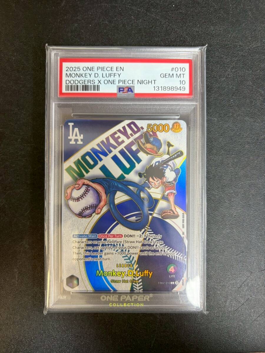 「1円スタート」ワンピースカードゲーム 【PSA10】モンキー・D・ルフィ ワンピースカード×ロサンゼルスドジャース.