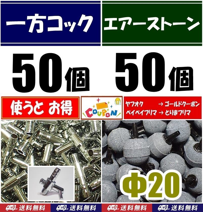 【送料込】 一方コック 50個+エアーストーン 50個 エアーコック  シュリンプ・金魚・メダカ水槽のエアー供給用に エアーポンプ圧調整に