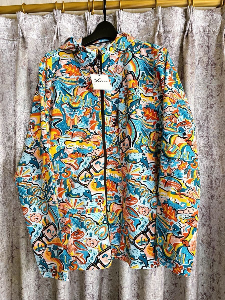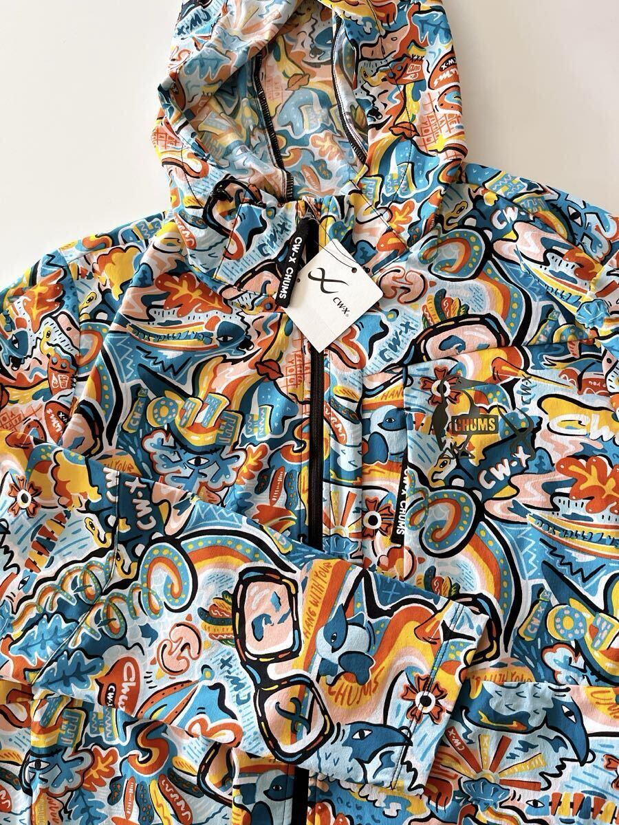 CW-X定番のジャケットアイテムがCHUMSの新しい柄の装いに。はっ水性がある布帛素材でアウトドアにも使えます。
