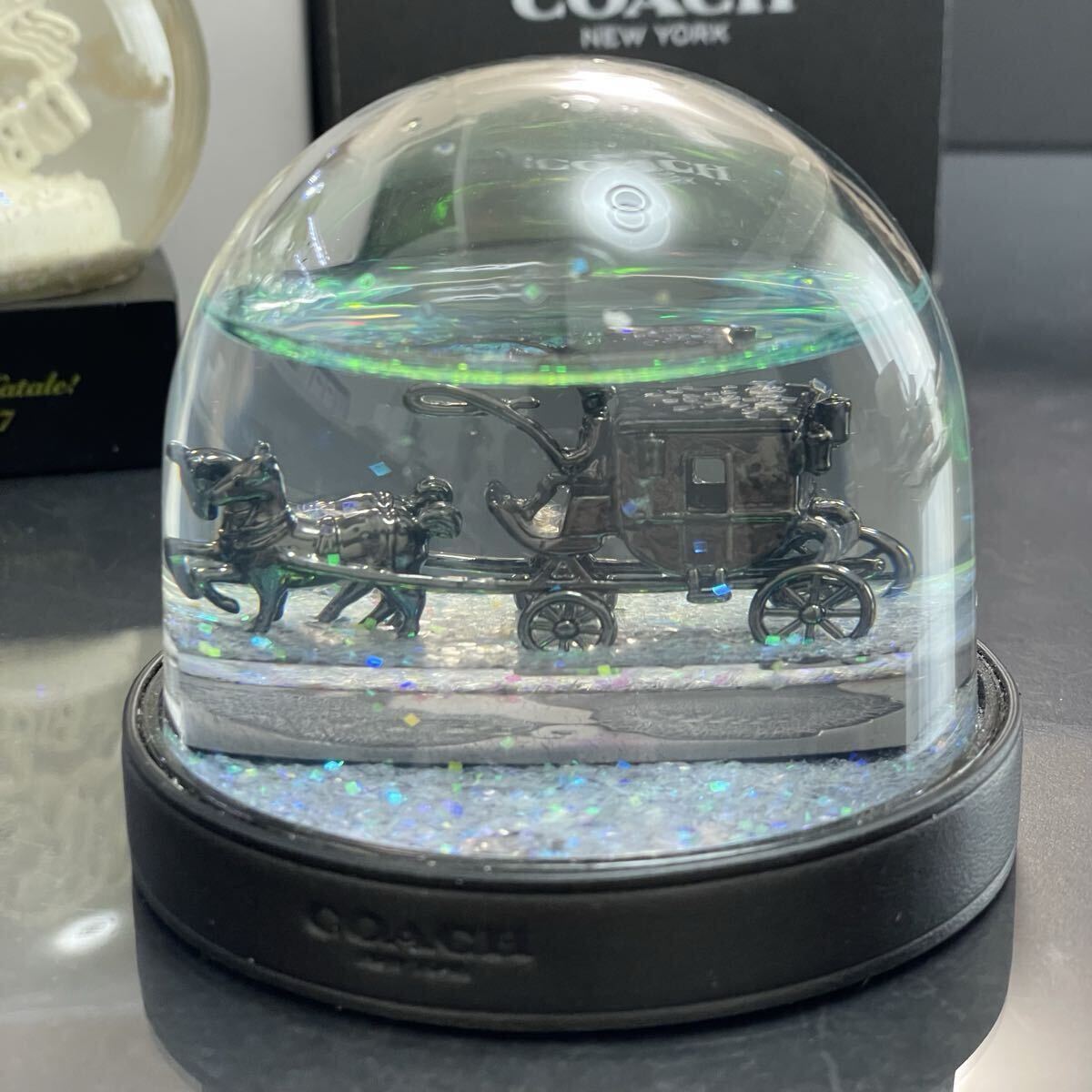 ・コーチのスノードームの中の馬車が横にするとひっくり返る