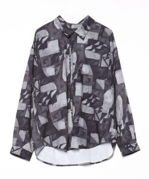 参考商品名:総柄プリントとろみ長袖シャツ/レトロ/古着風/幾何学柄/フラワー柄/オーバーサイズシャツ