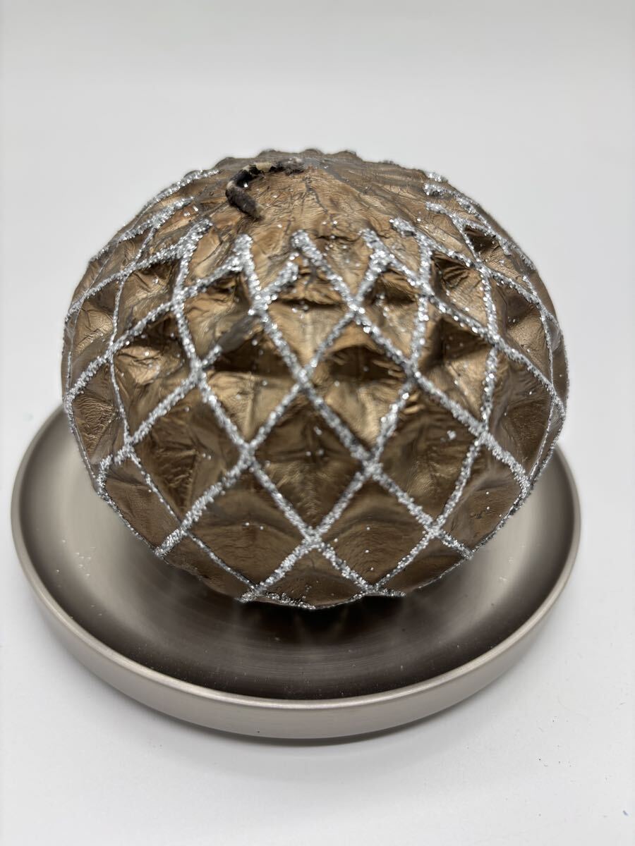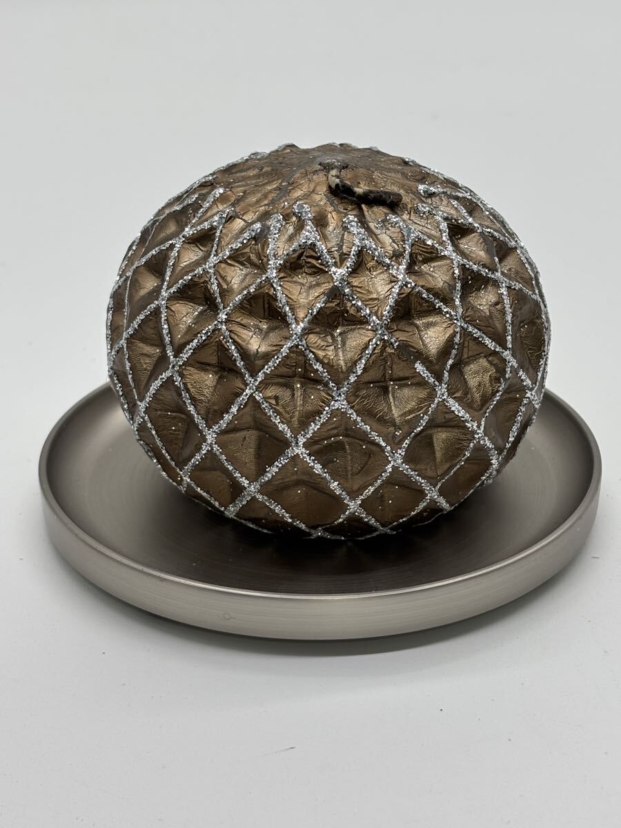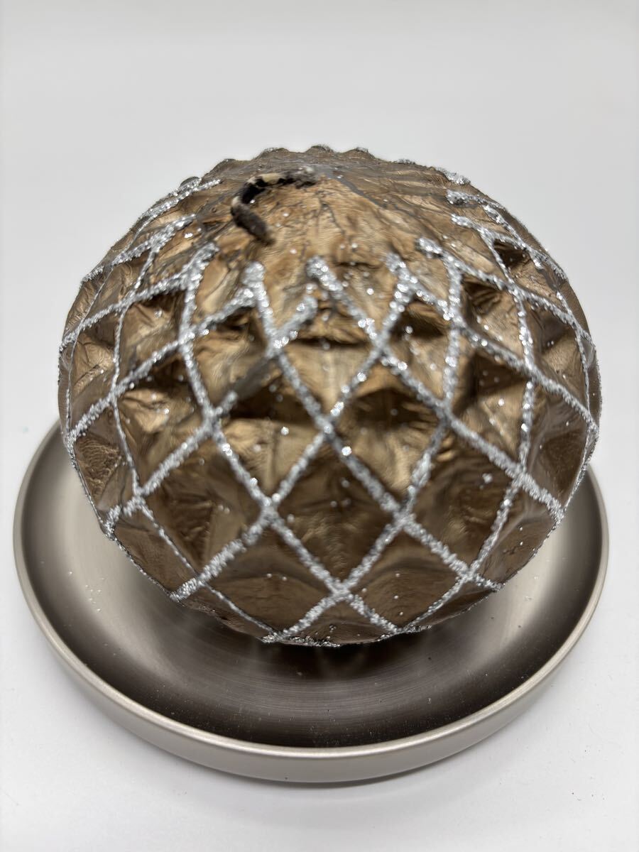 【欧州キャンドル】催しパーティー 娯楽・誕生日バースデー・コレクション・オブジェ・プレゼント・(メロン型ゴールドカラー)円形台付