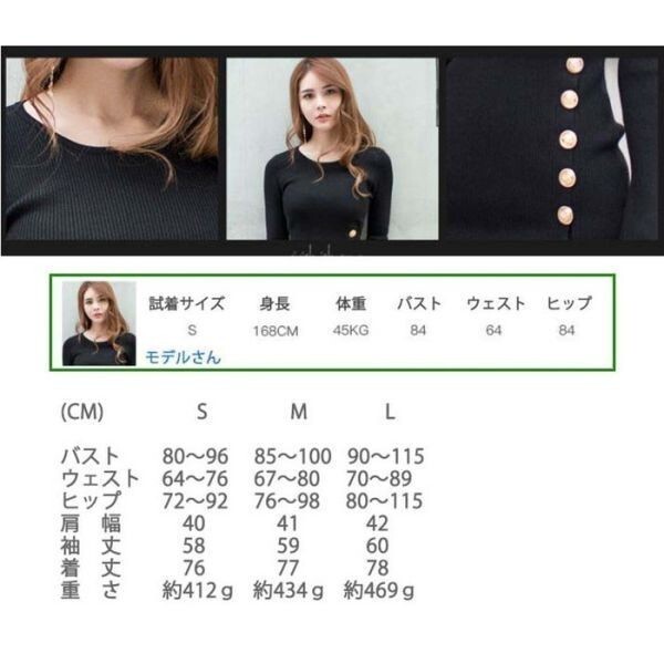 チュニックワンピース ニット スリット付き ロングスリーブ 膝上丈 ラウンドネック ボタン付き レディース S