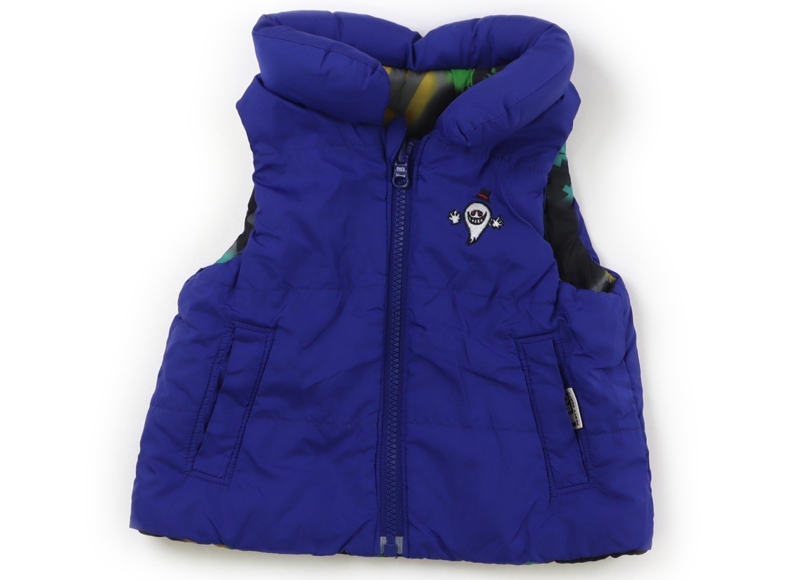 ポリエステル素材。中綿入り。リバーシブル仕様。ファスナー金具に剥げあり。柔軟剤の匂い残りあり。洗いざらし感があります。
