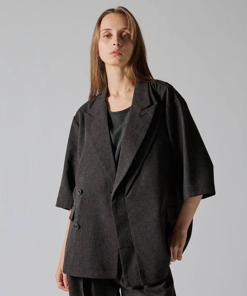 参考商品名:【CLEL】Linen Blend Double Lapel Short Sleeve Tailored Jacket/リネンブレンド ダブルラペル半袖テーラードジャケット【セットアップ対応】