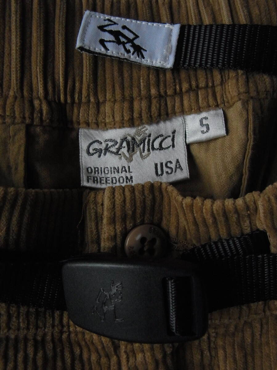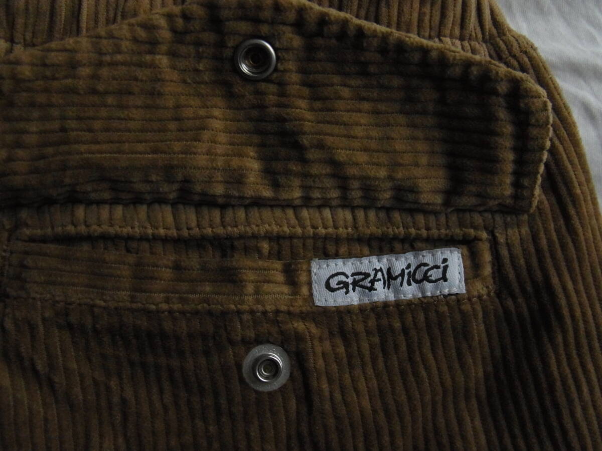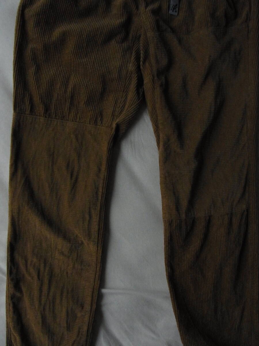 グラミチのコーデュロイ素材でフロント部分が7枚目の画像の様に切り替えられたデザインのクライミングパンツになります。USEDで着用感は御座いますが、特に目立ったダメージ等は御座いません。