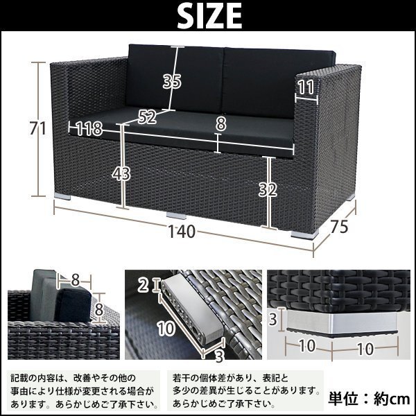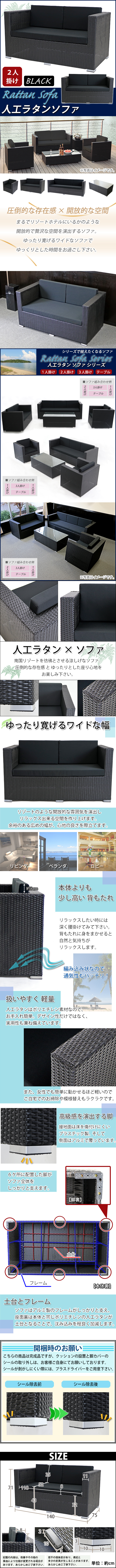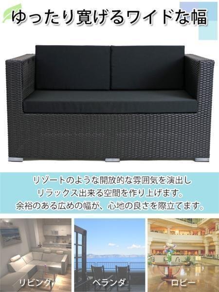 | 商品名 | 新品 人工ラタンソファ 2人掛け 黒 ラブソファ 2P 籐 家具 ファニチャー インテリア おしゃれ リビング sofa ソファー 椅子 チェア 南国 アジアン バリ風 リゾート ホテル ベランダ バルコニー テラス 庭 ガーデン ラタンチェア 2seater ブラック rattan642pbk |