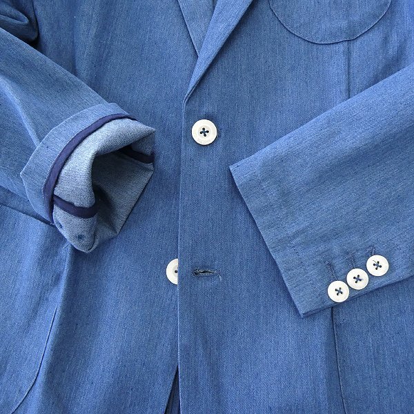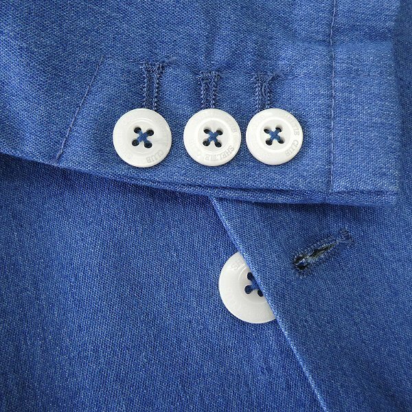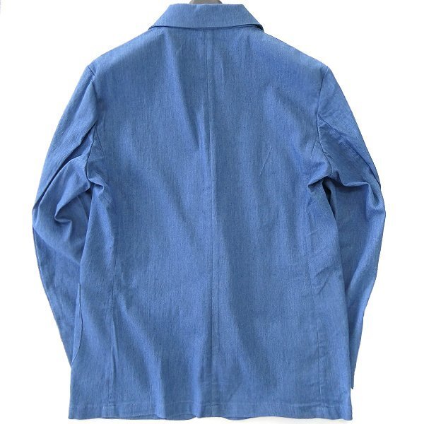【Sheltie Club】 〈湘南の海〉をテーマとしたブランドコンセプトに沿って、マリンテイストを味付けしたシンプルなスタイルを信条とし、ラフで、気取らず、気張らない、ややゆったりとした着こなしを提案します。 サラリとライトな春夏向けのデニム素材を使用したジャケット。 ストレッチが良く効いているので、とても快適な着心地です。 ベーシックなノッチドラペルのシングル2B。 副材を省いたアンコンジャケットなので軽快に羽織れ、春夏らしい爽やかな仕立てです。 【デザイン】 ・フロントは2つボタン ・裏地なし ・ノーベント ・袖先は3つボタン(開き見せ) |