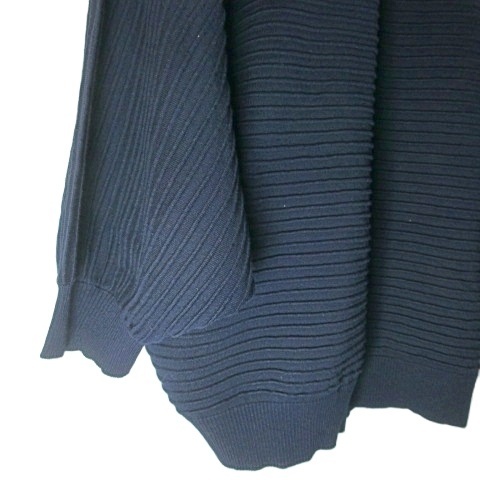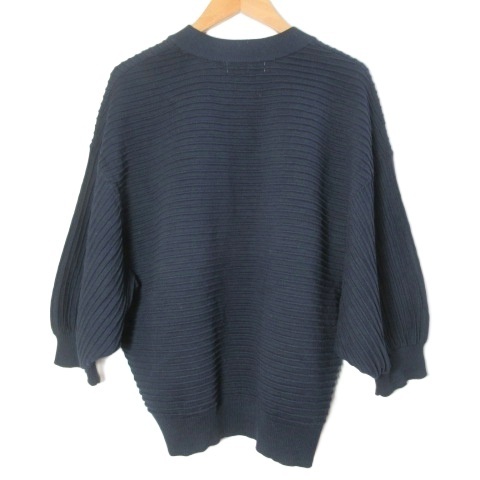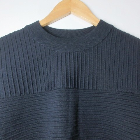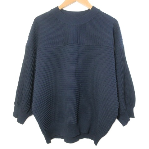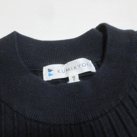 クミキョク 組曲 KUMIKYOKU 美品 大きいサイズ リップルニット プルオーバー 5分袖 7 17号 紺 ネイビー /X レディース
