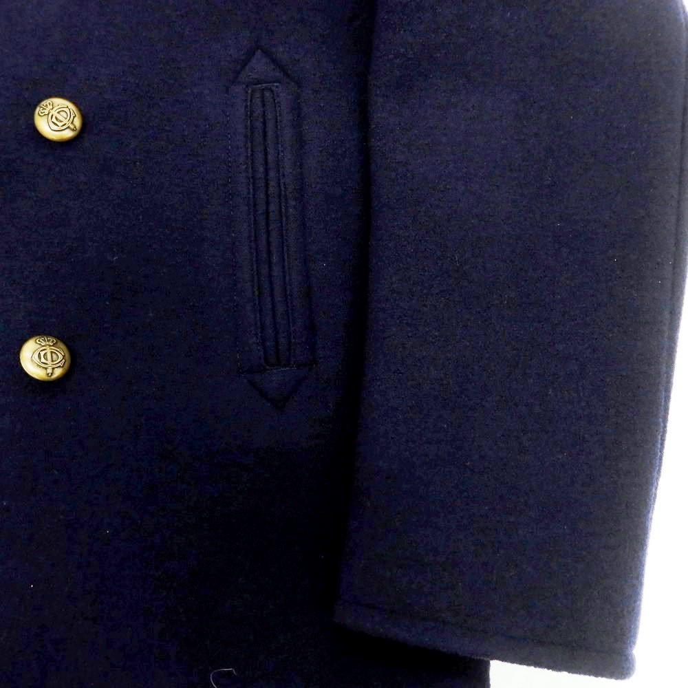 肉厚で保温性に優れたウールメルトン素材を使用し、しっかりとした質感と高級感を兼ね備えたピーコートです。クラシカルなダブルブレスト仕様に、ゴールドのメタルボタンが、程良いデザインアクセントになっています。副資材を極力使用せずに仕立てたナチュラルな着心地も魅力です。