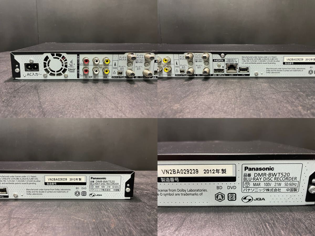 【現状渡し品】 Panasonic DMR-BWT520 ブルーレイディスクレコーダー 2012年製 リモコン付 BDレコーダー パナソニック -エ