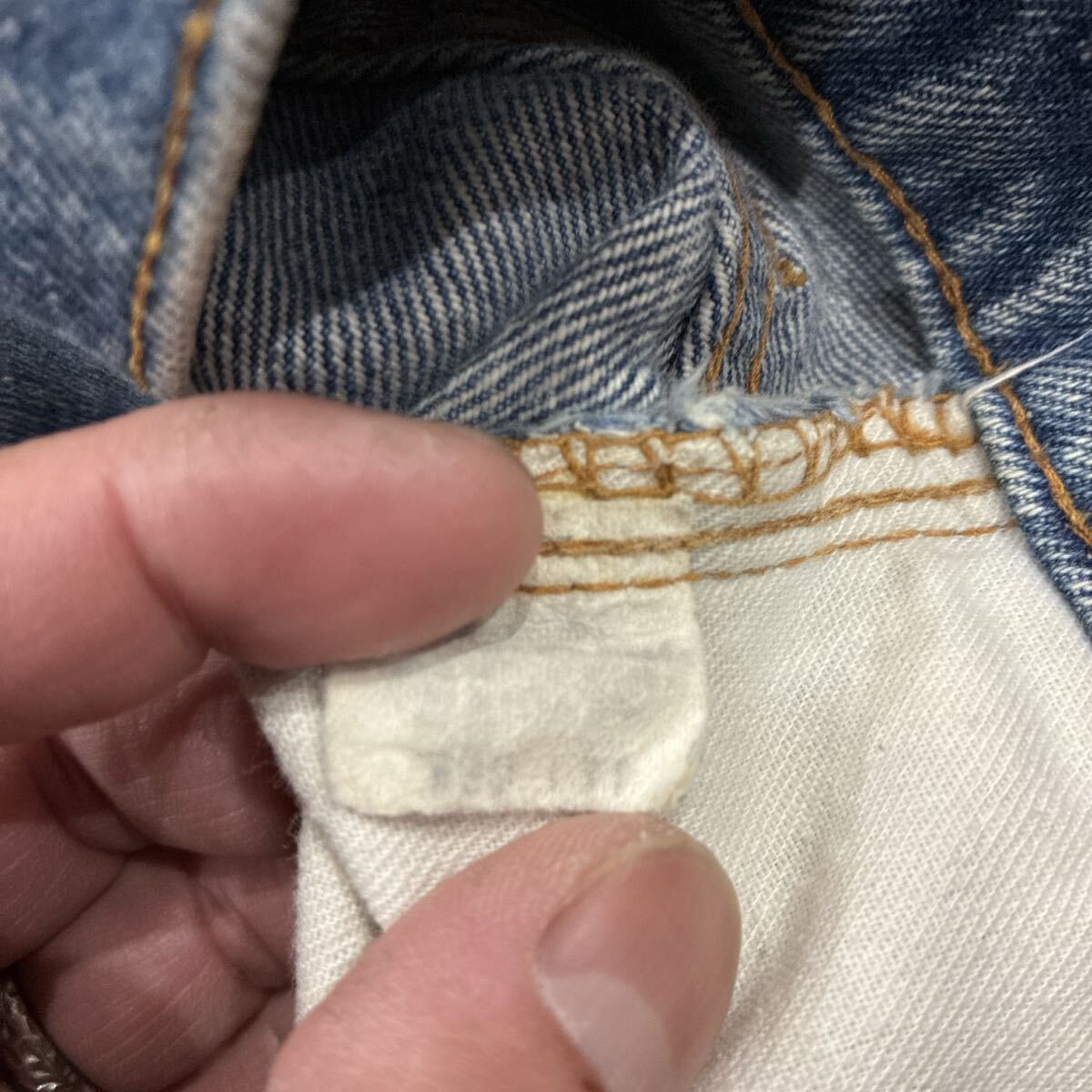 状態ですが、全体的に着用感、わずかな擦れやリペアはありますが、気になるダメージ等無く、ヒゲや縦落ちがきれいで雰囲気の良い1本です。ビンテージデニムや古着慣れしている方でしたら問題なく着用して頂けます。
