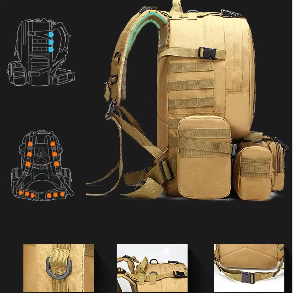 アウトドア用 超高品質 大型 65L 組立式バックパック 600Dリュックサックミリタリー 防水 サバゲー装備 キャンプ 野外登山 32×20×50cm