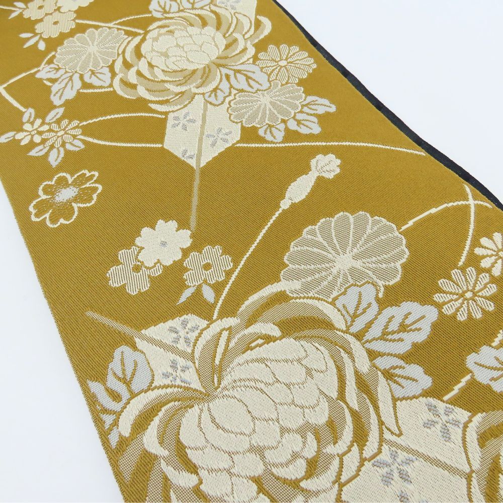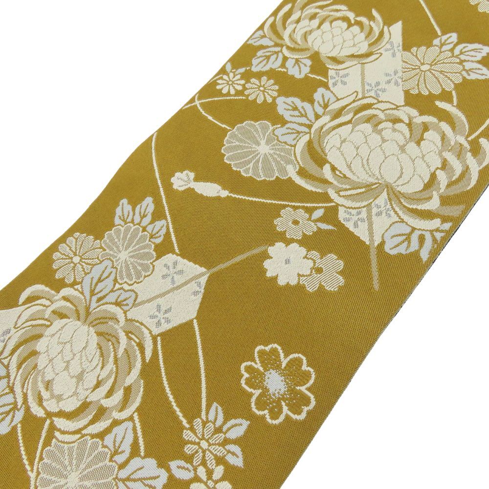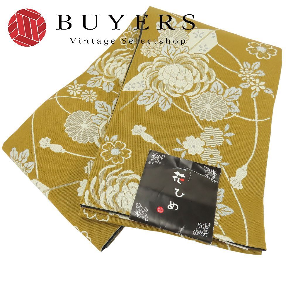 中古 半幅帯 化学繊維 ブラウン 花柄 お洒落 和装 呉服 和服 きもの レディース 女性