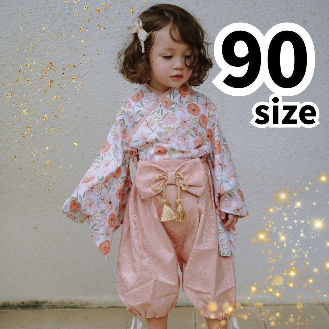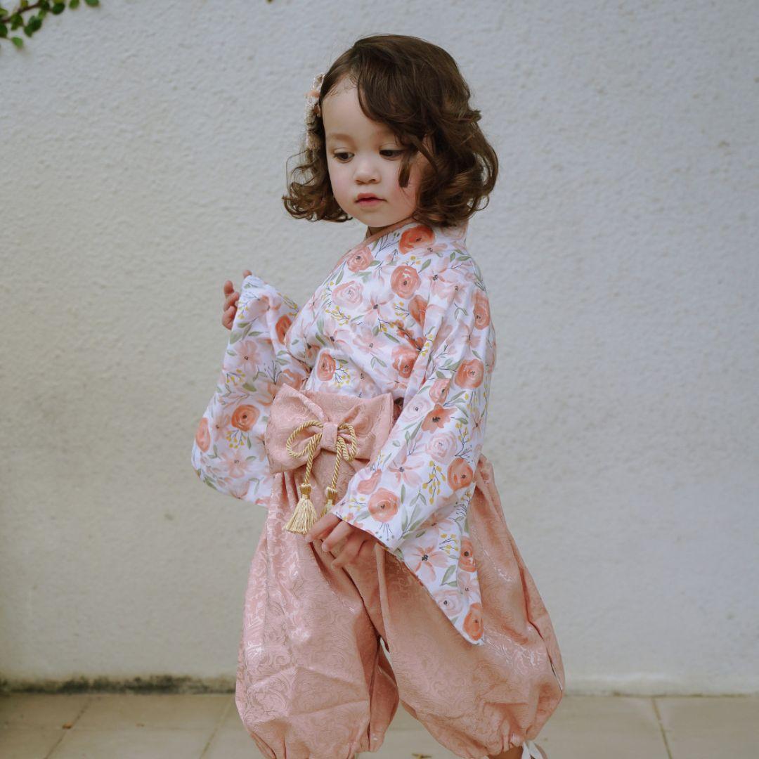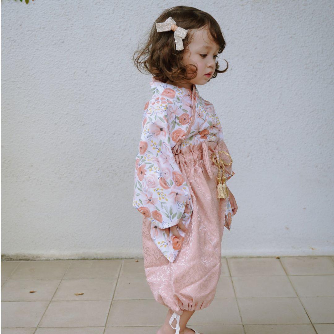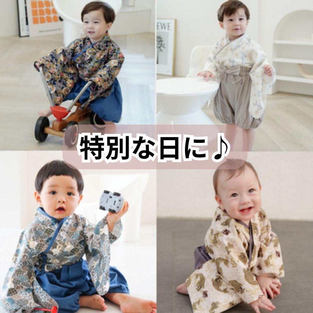 優しい色合いの花柄が可愛い、ベビー・キッズ用の袴ロンパースです。