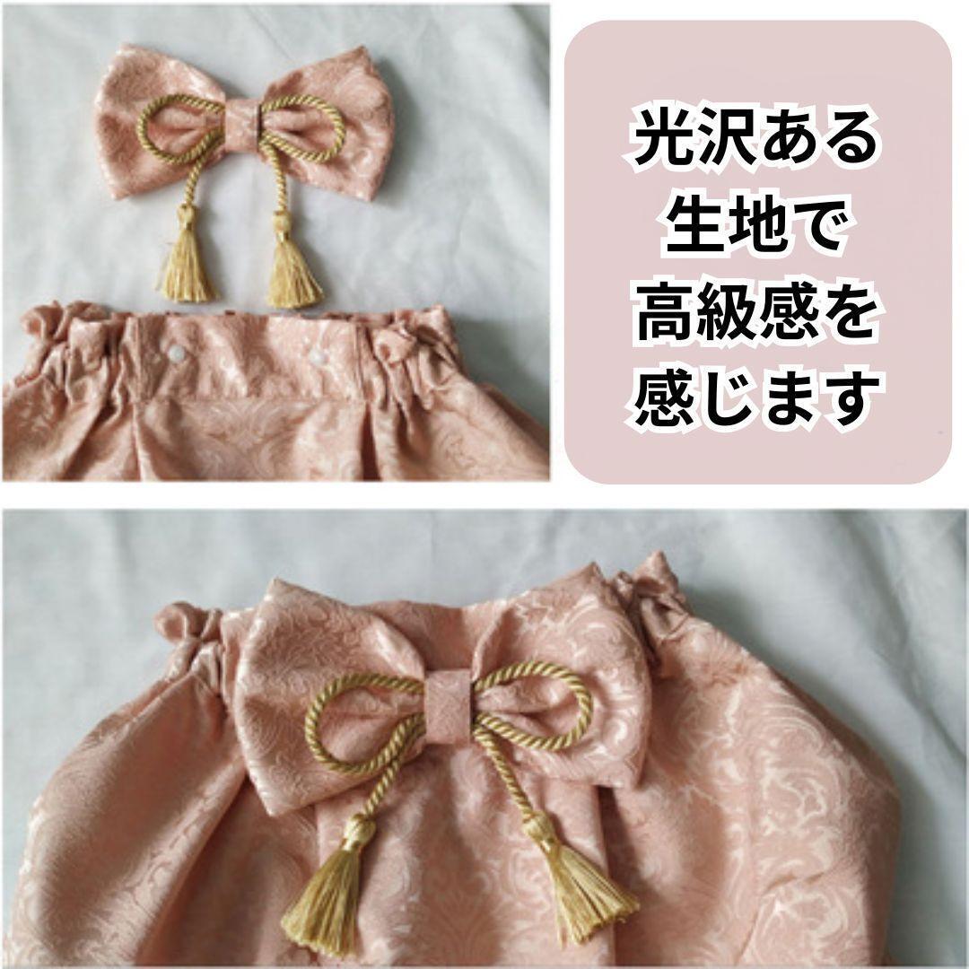 袴部分はふっくらとしたシルエットで、愛らしい着こなしが叶います。また、光沢感のある生地を使用しており、高級感を感じることができます。