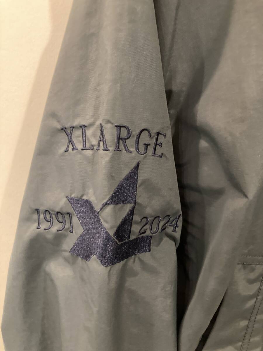 大人気!XLARGEナイロンジャケットになります。カラー(GREEN)のサイズ(L)になります。素人寸ですが、肩幅54.身幅 67.丈670.になります。素人寸ですので、NCNRでお願い致します。