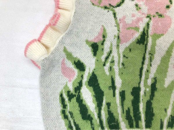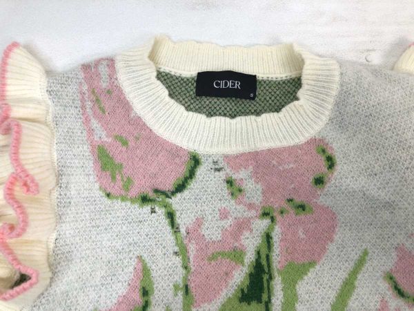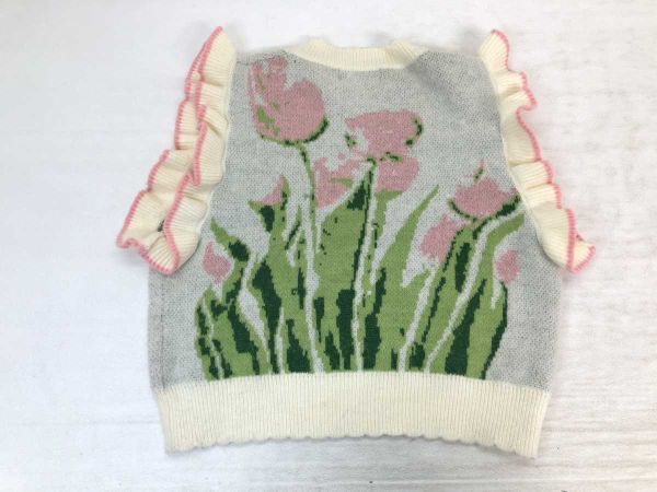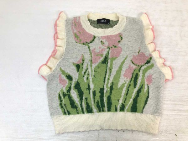 サイダー CIDER レトロ ガーリー カントリー 古着 ニットフリル アート チューリップ ジャガードニット ベスト レディース S 白ピンク です。