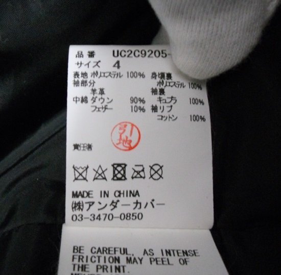 ■商品説明 UNDERCOVER アンダーカバー レザースリーブダウンジャケット UC2C9205-1 ブラック サイズ4 です。