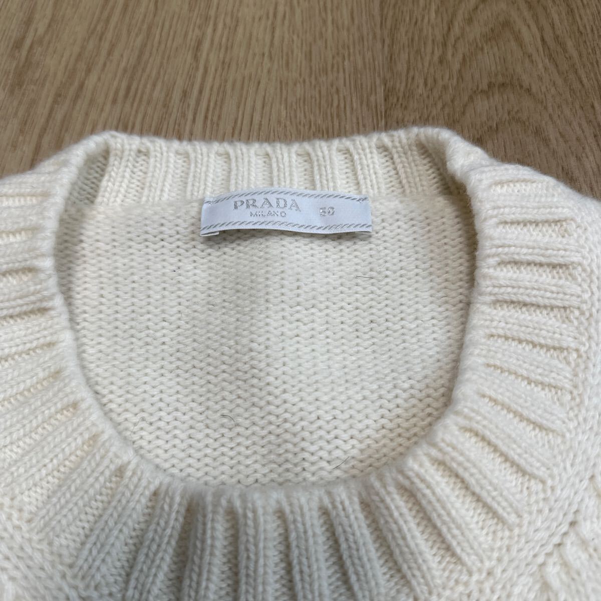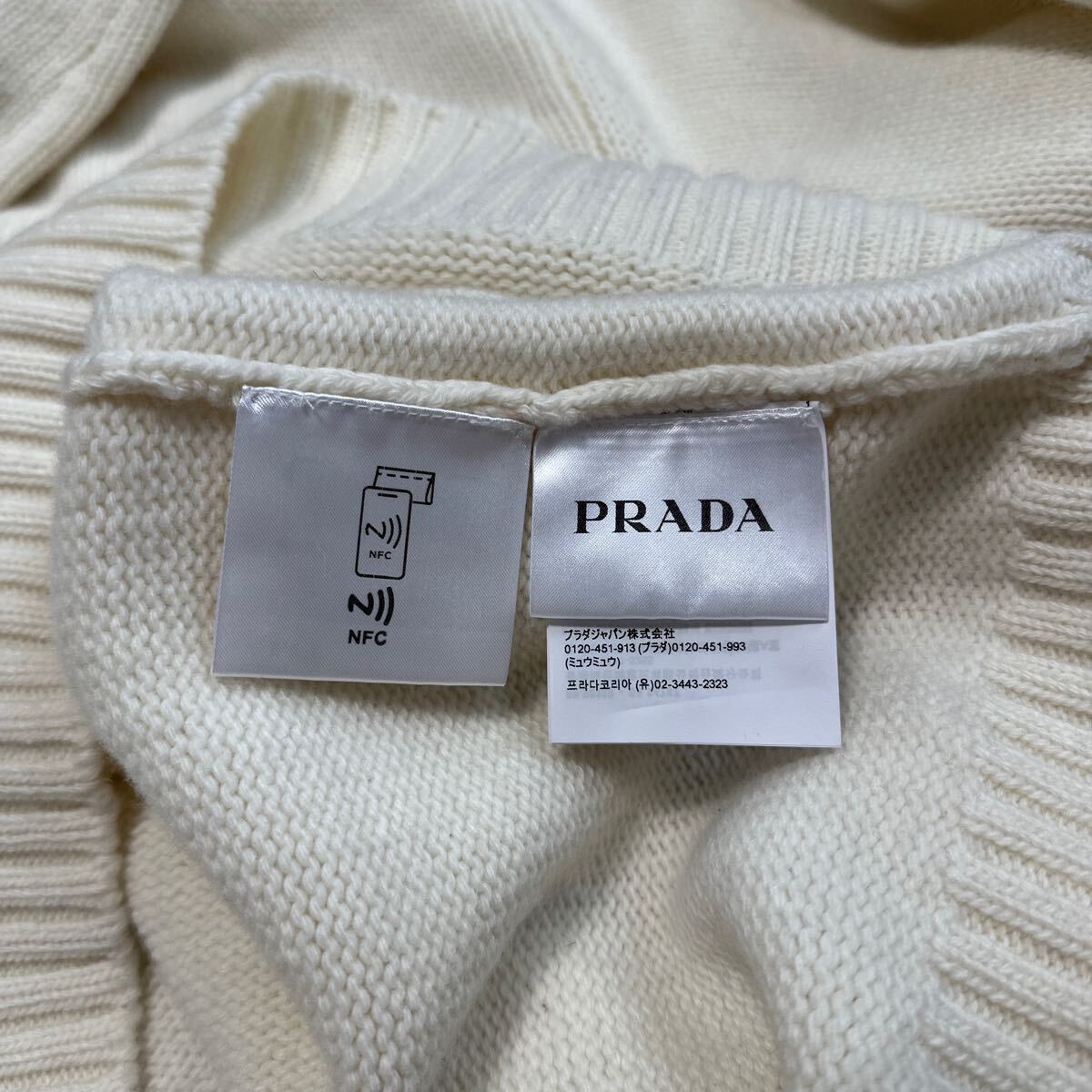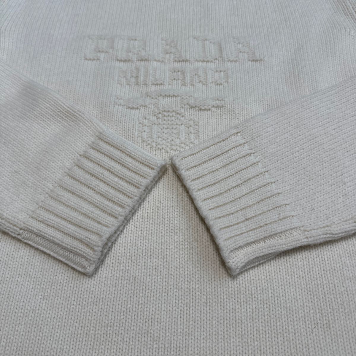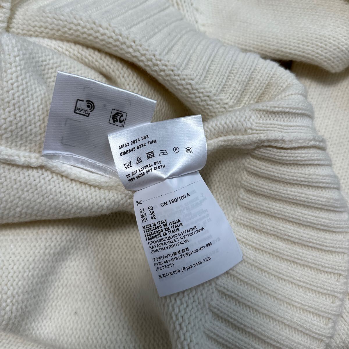【極美品】PRADA プラダ 現行品 3D ロゴ ウールxカシミヤ クルーネック セーター size 50 ホワイトです