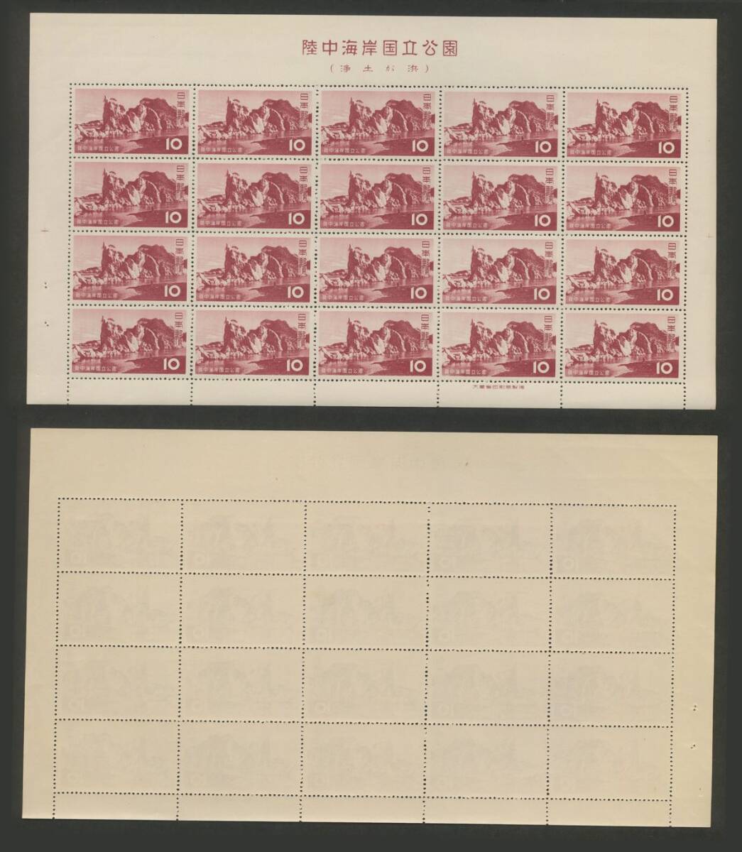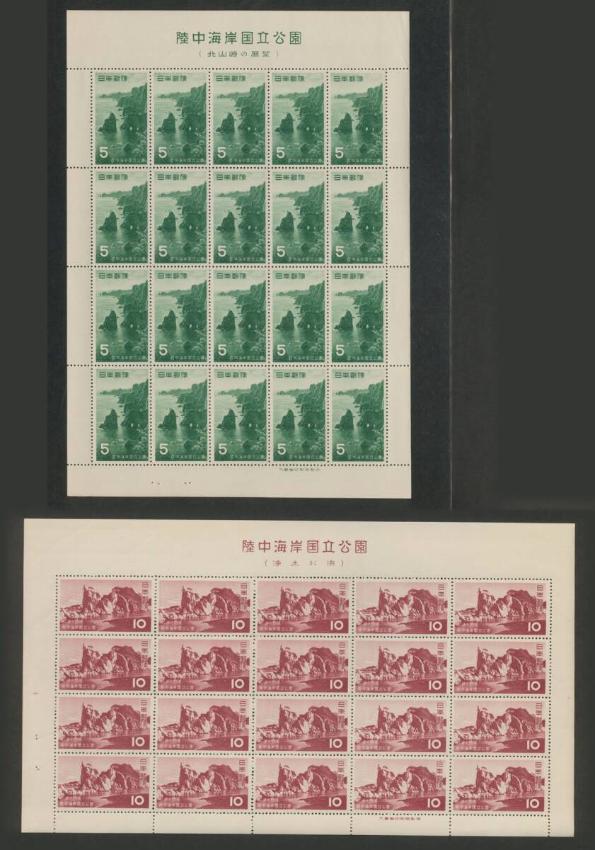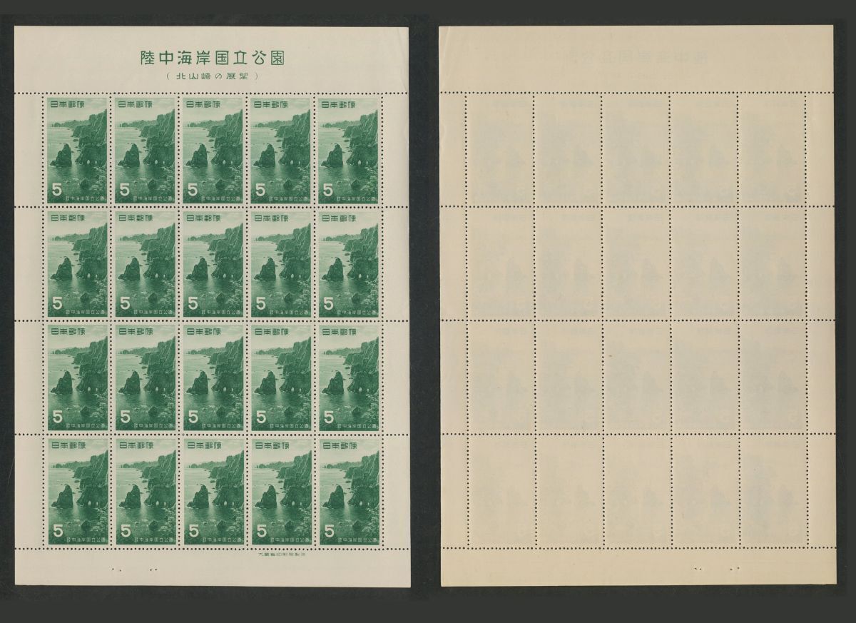 日本切手 第1次国立公園シリーズ 1955年「陸中海岸国立公園」20面シート2種(5円・10円) 額面300円 未使用