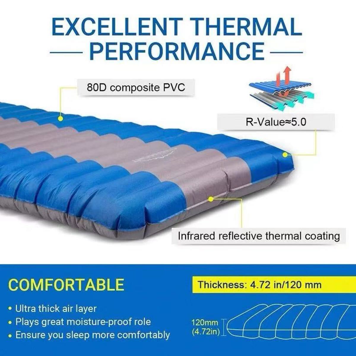 断熱性能抜群 キャンプ用エアマット 120mm厚 超快適 80D複合PVC素材 R値5.0 防湿 防寒 足踏み式 アウトドア 登山 車中泊用 190×70cm
