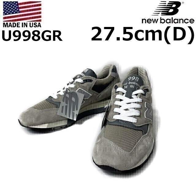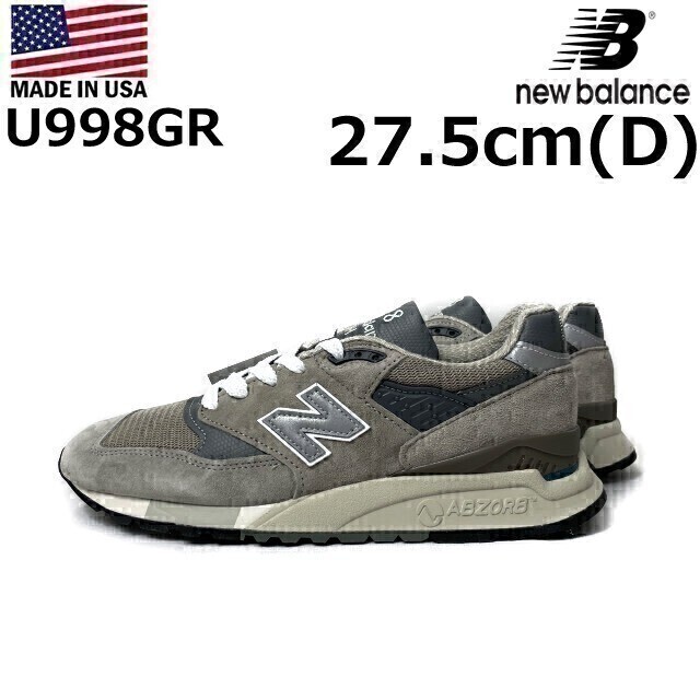 1円~!売切!【正規新品】new balance ニューバランス◆U998GR スニーカー アブゾーブ US購入(Dワイズ/US9.5/27.5cm)グレー 190303-50