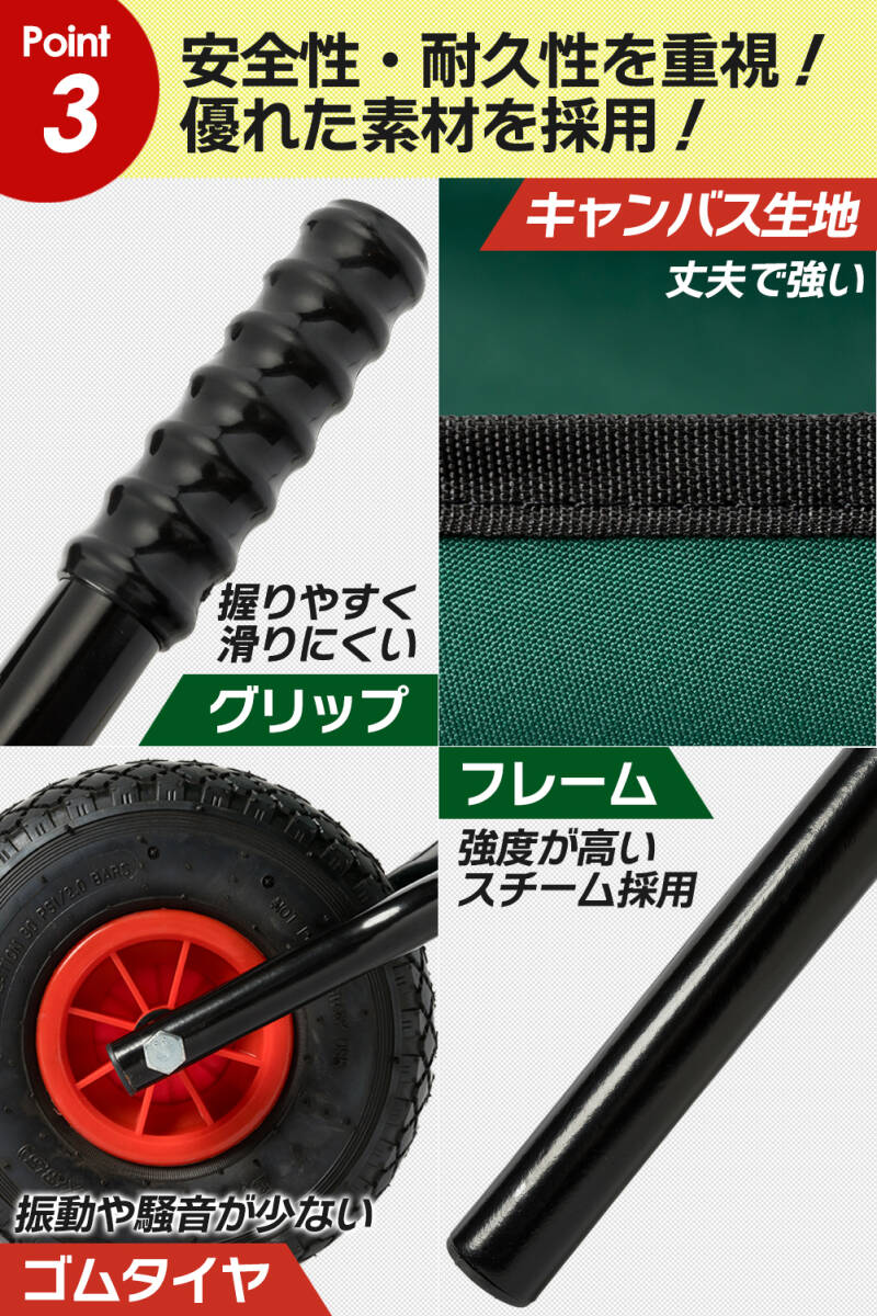 | 商品説明 | 展示品となりますので、多少のキズや汚れ等がございます。 使用上問題ございませんので、ご安心ください。 組立説明動画:折りたたみ一輪車