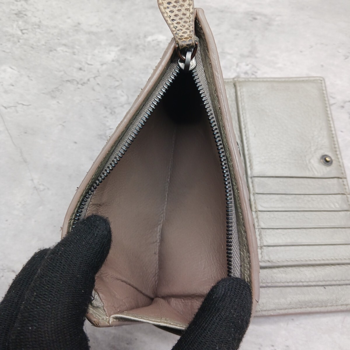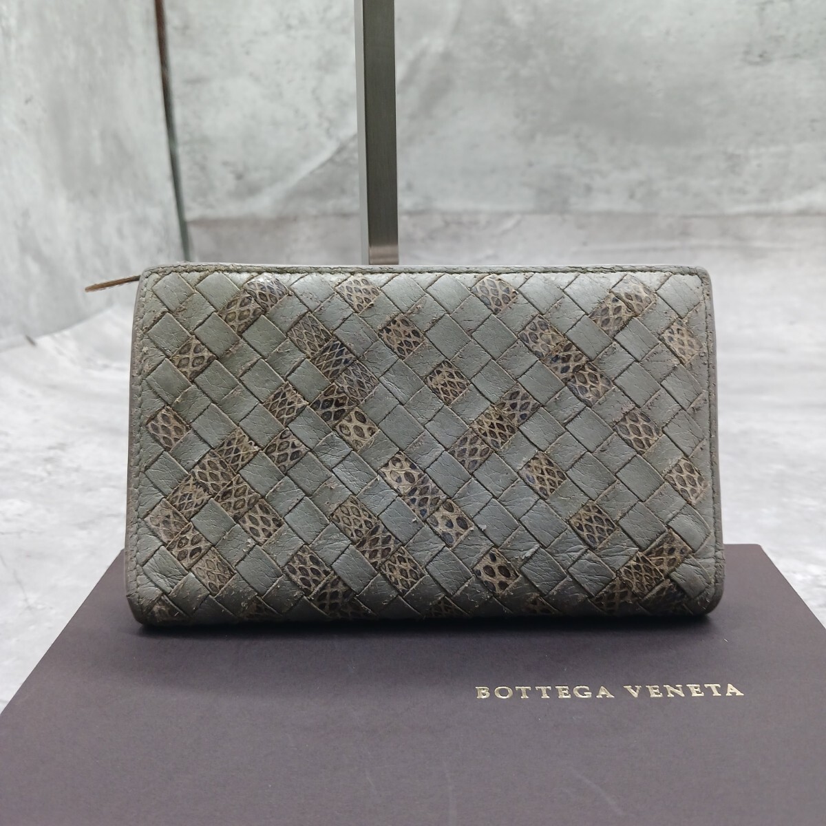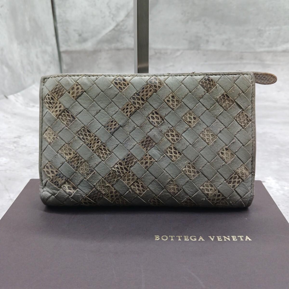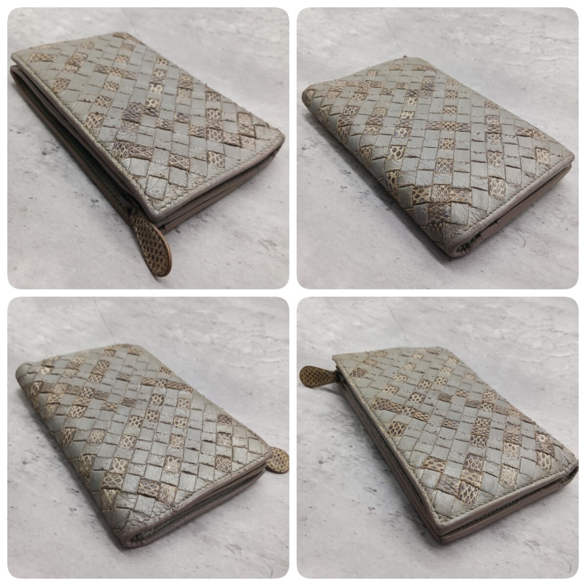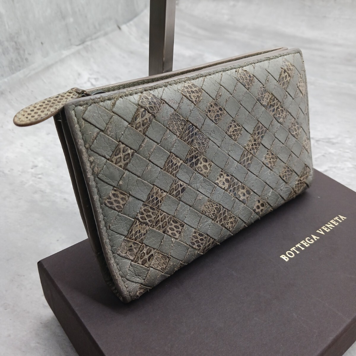 美品 BOTTEGA VENETA ボッテガヴェネタ パイソン 二つ折り 長財布 イントレチャート グレージュ