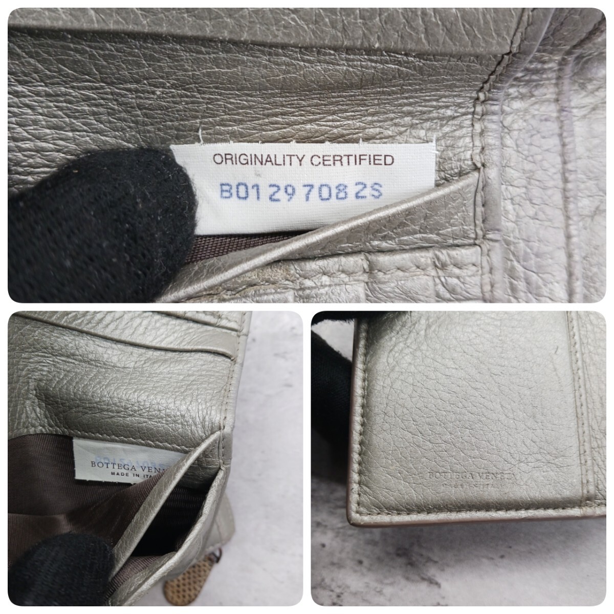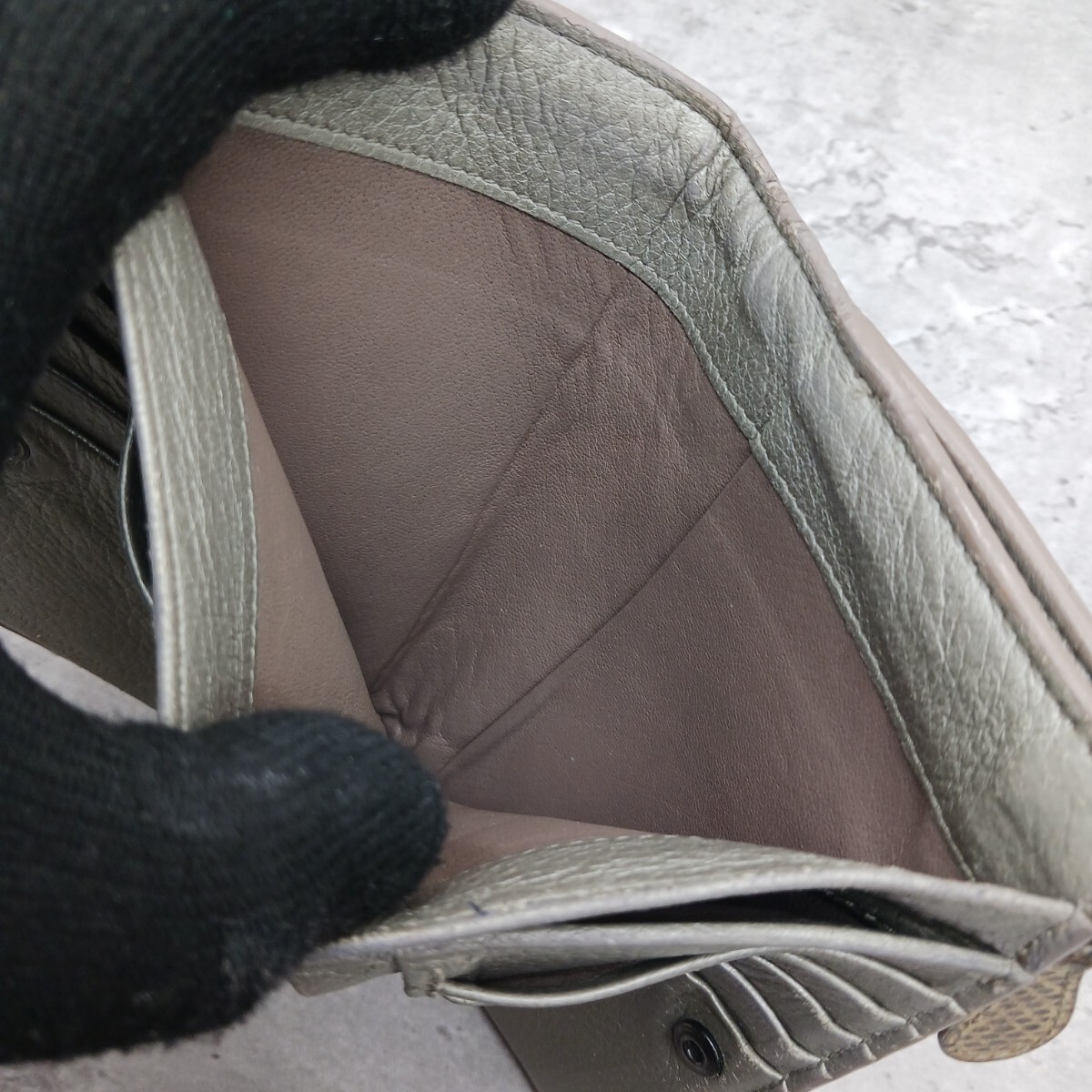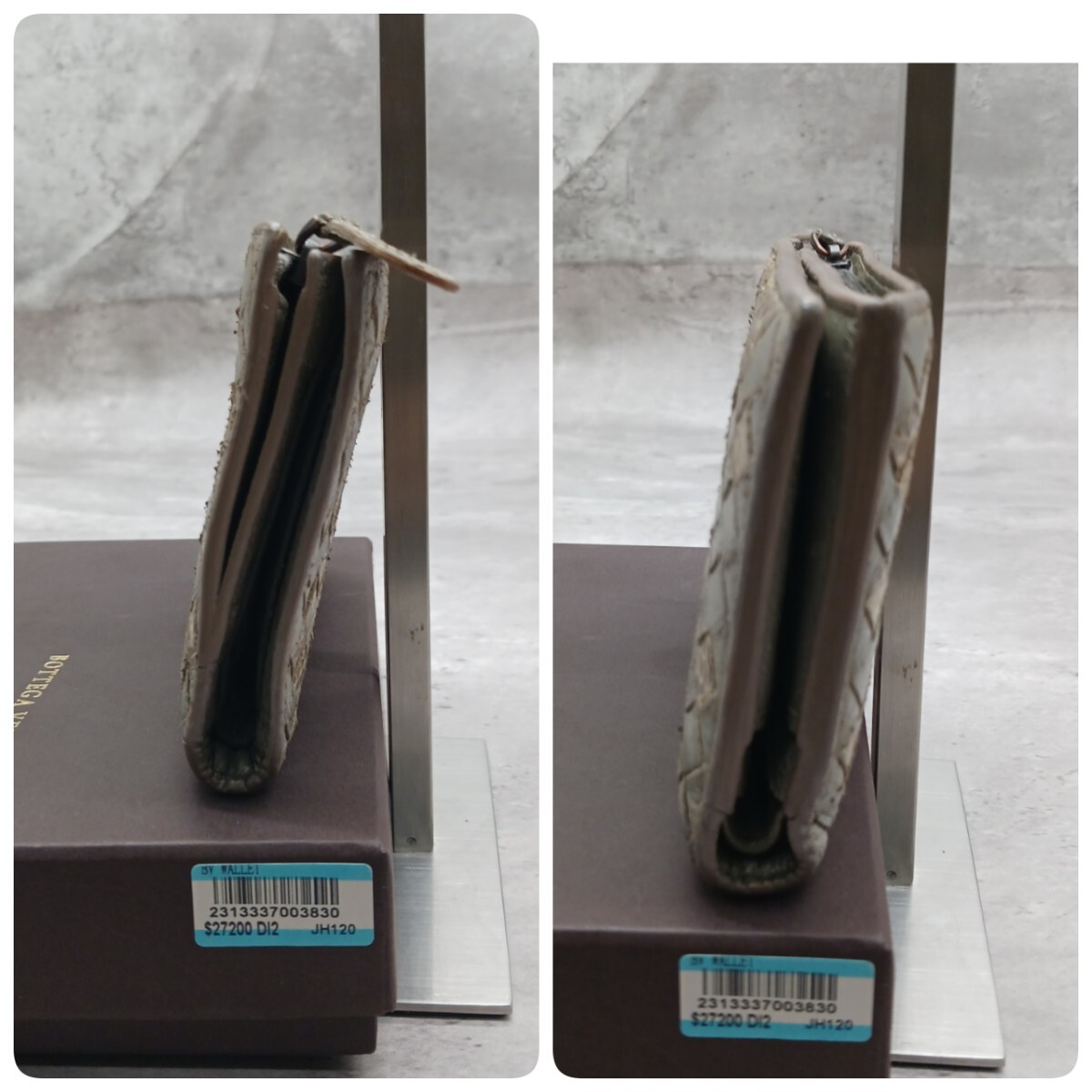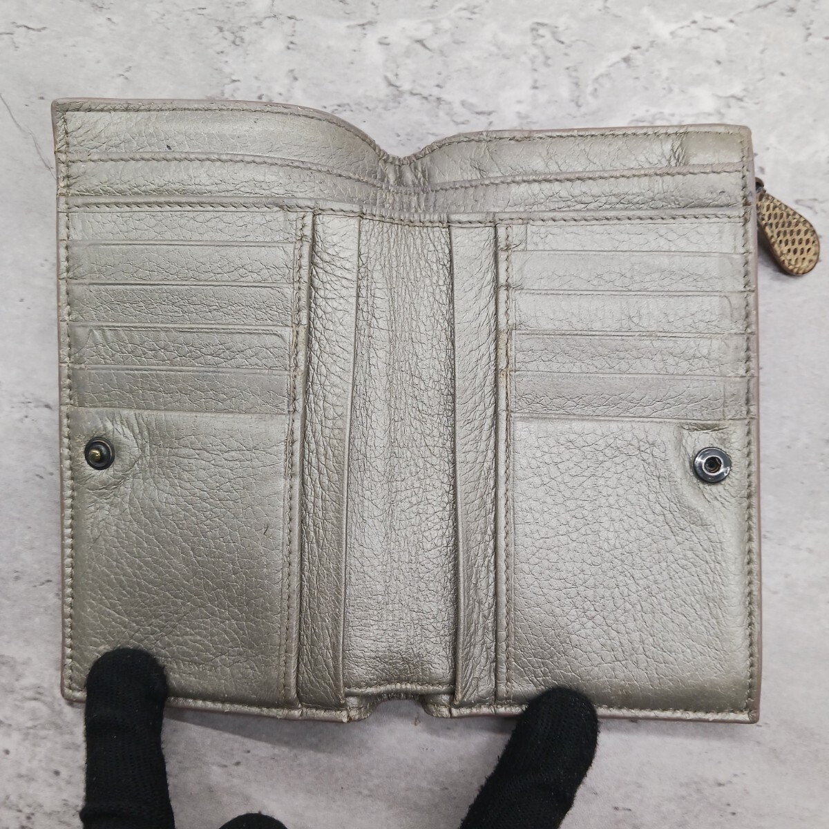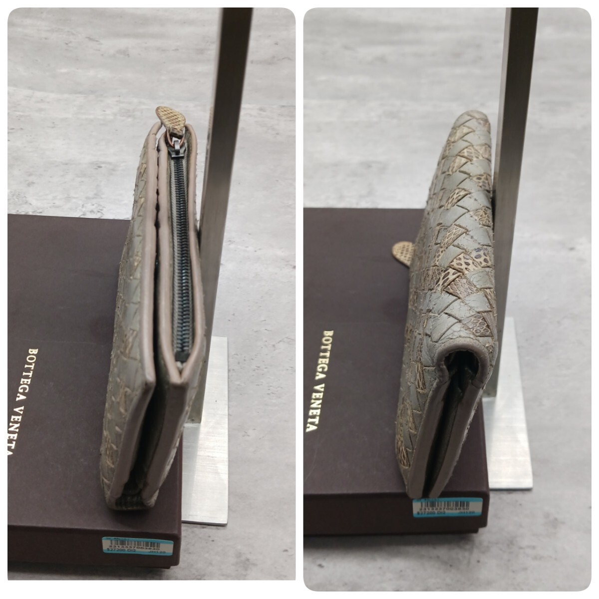 美品 BOTTEGA VENETA ボッテガヴェネタ パイソン 二つ折り 長財布 イントレチャート グレージュ