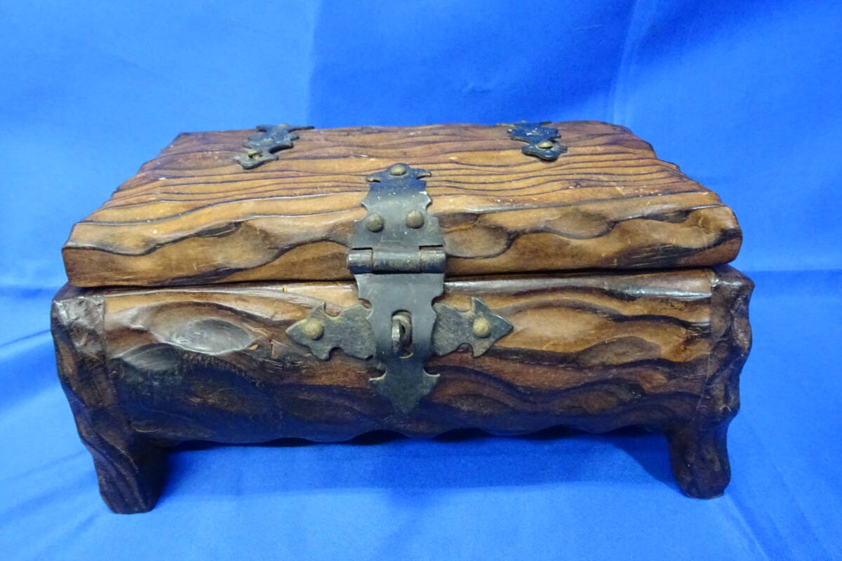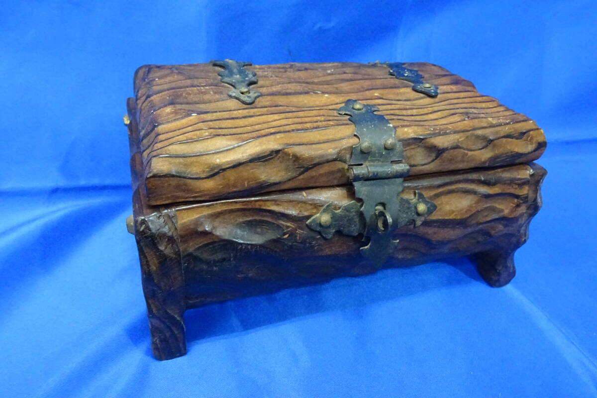 木製 小物入れ 宝石入れ 椋木 装飾金具付です。