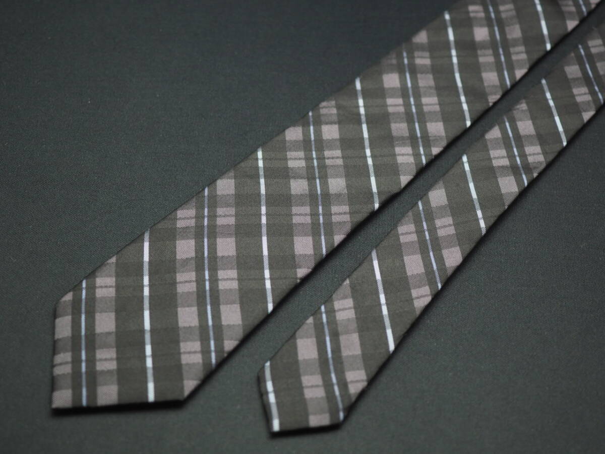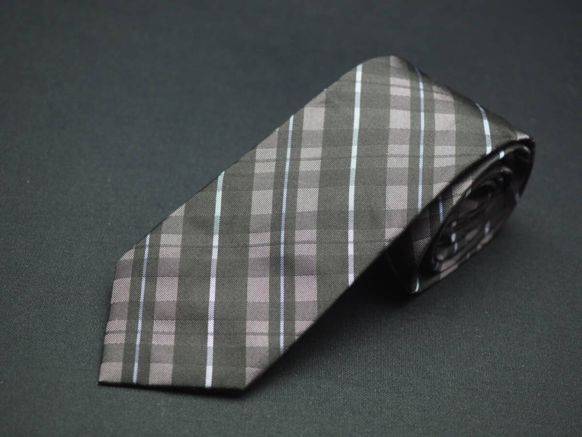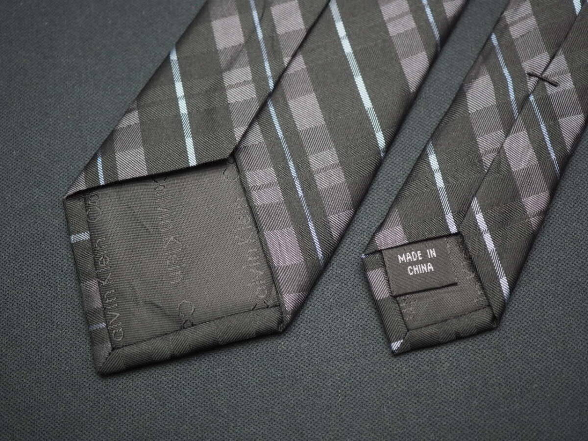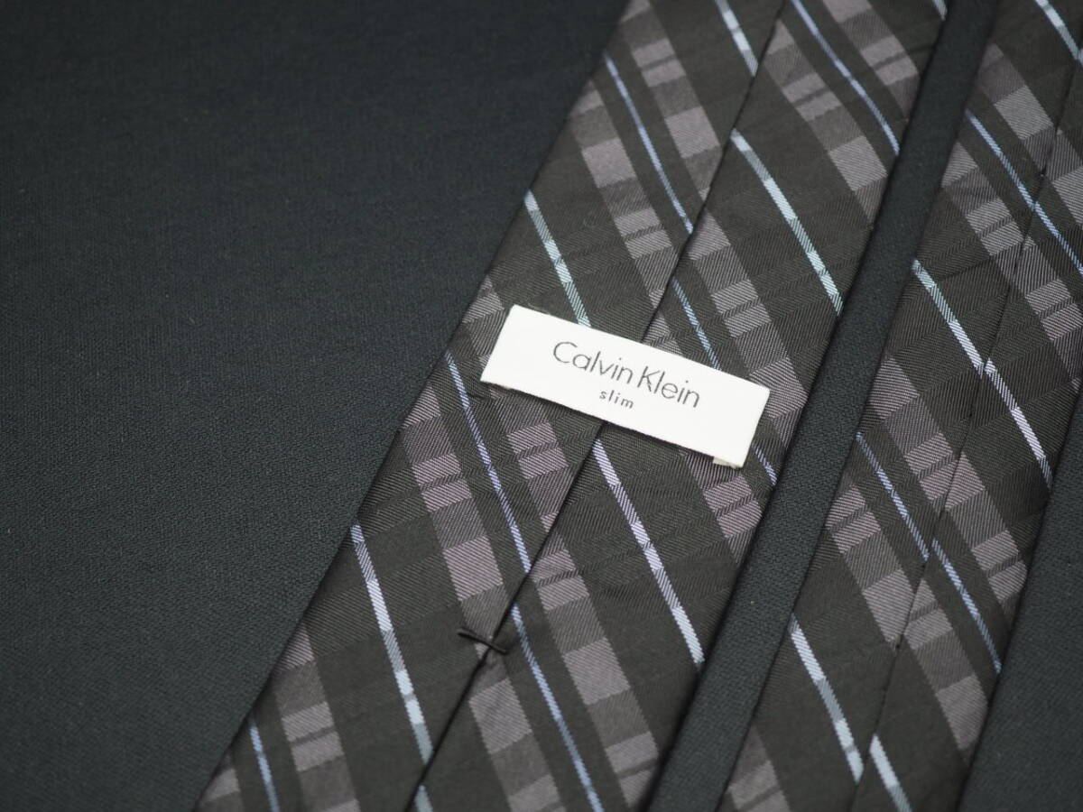 美品【Calvin Klein カルバンクライン】 G1367 細身 チェック ブラック系 SILK ブランド ネクタイ 古着 良品 転売 仕入