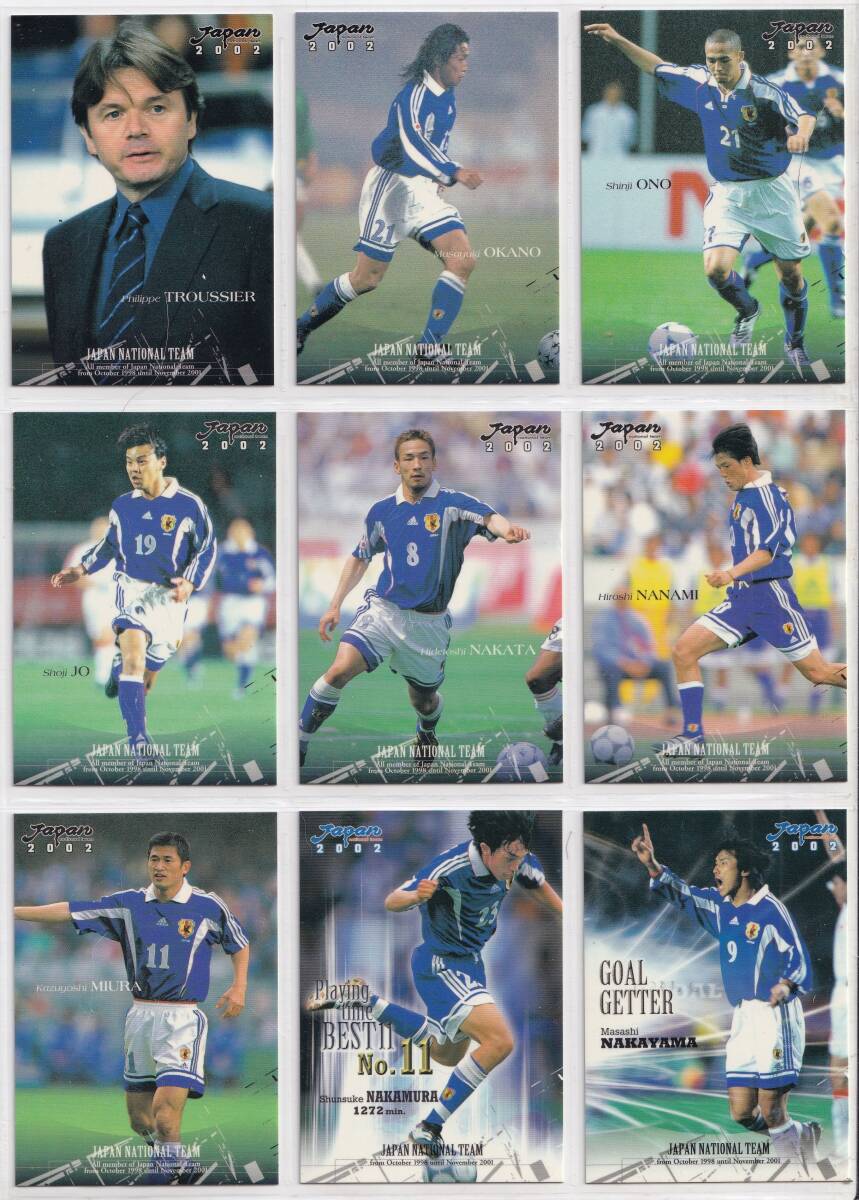2002日本代表オフィシャルカード レギュラーカード99枚セット トルシエジャパン。写真は99枚のうちの9枚です。非喫煙者の個人所有です。折れや目立つ汚れはありませんが古いものなのでご理解ください。トルシエ、中田英寿、三浦知良、中村俊輔他