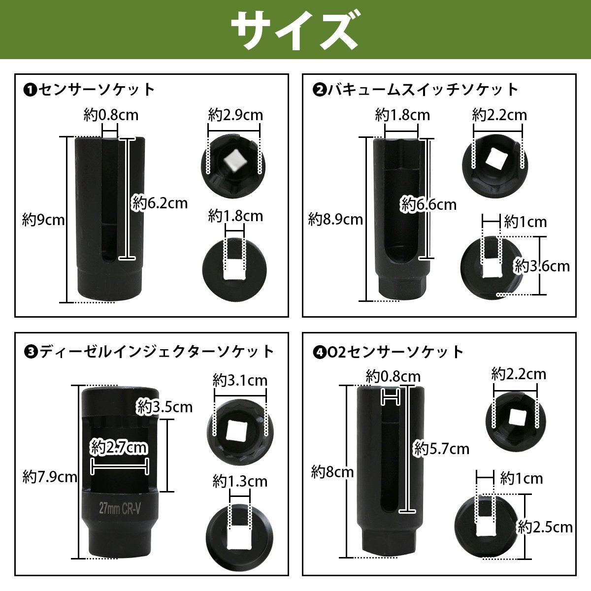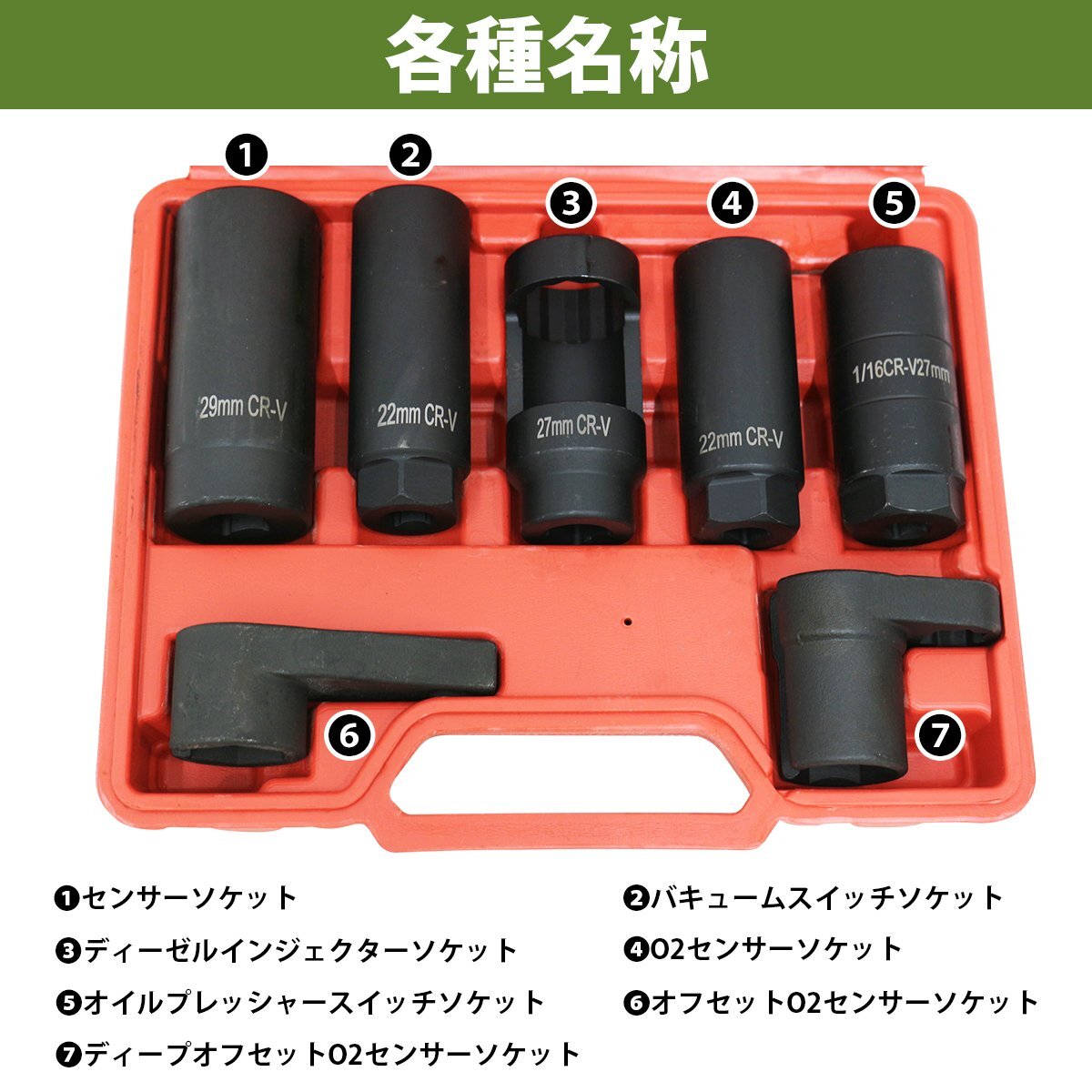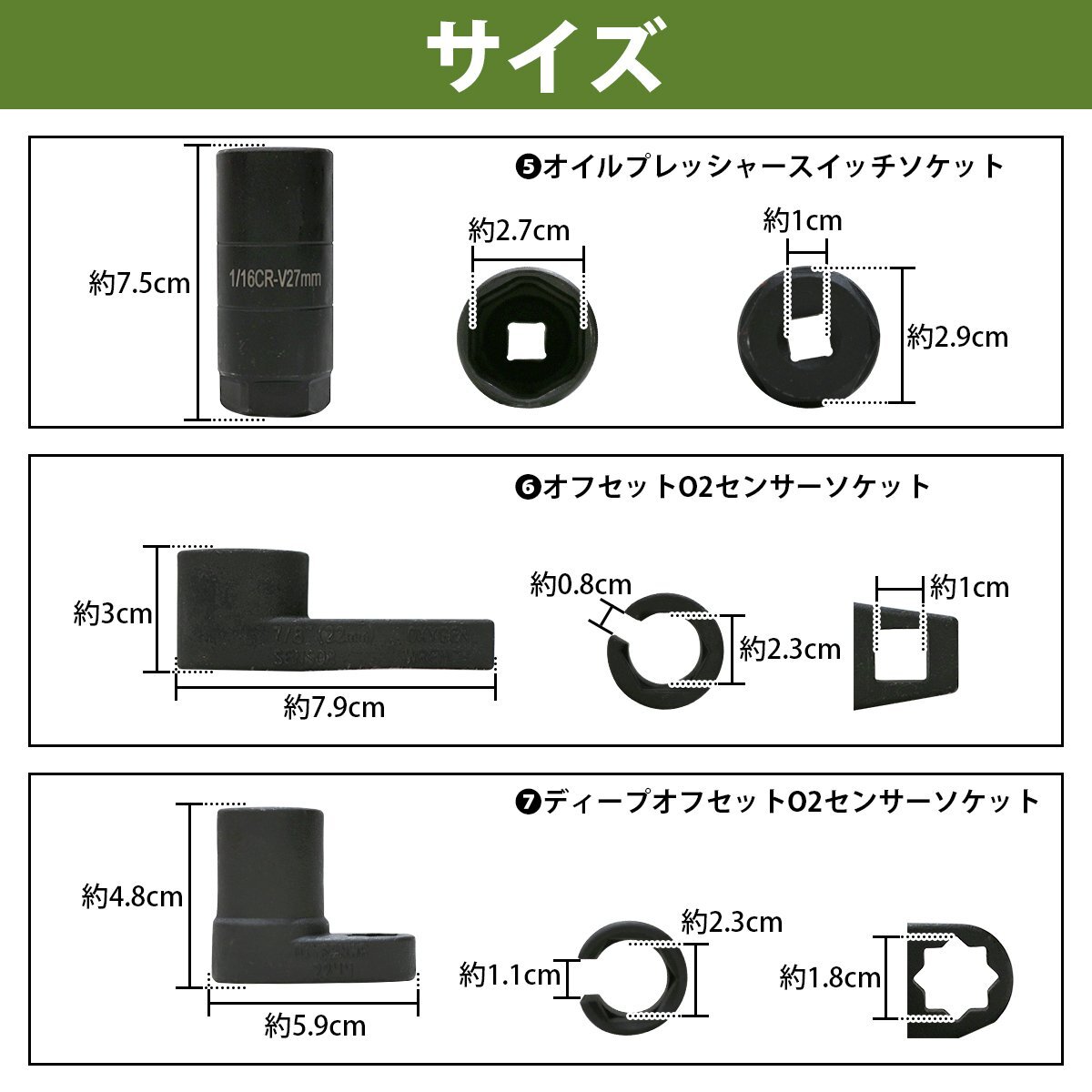 7pcs センサーソケット O2センサー バキューム ディーゼルインジェクター オイルプレッシャー スイッチ 脱着 工具 オーツー