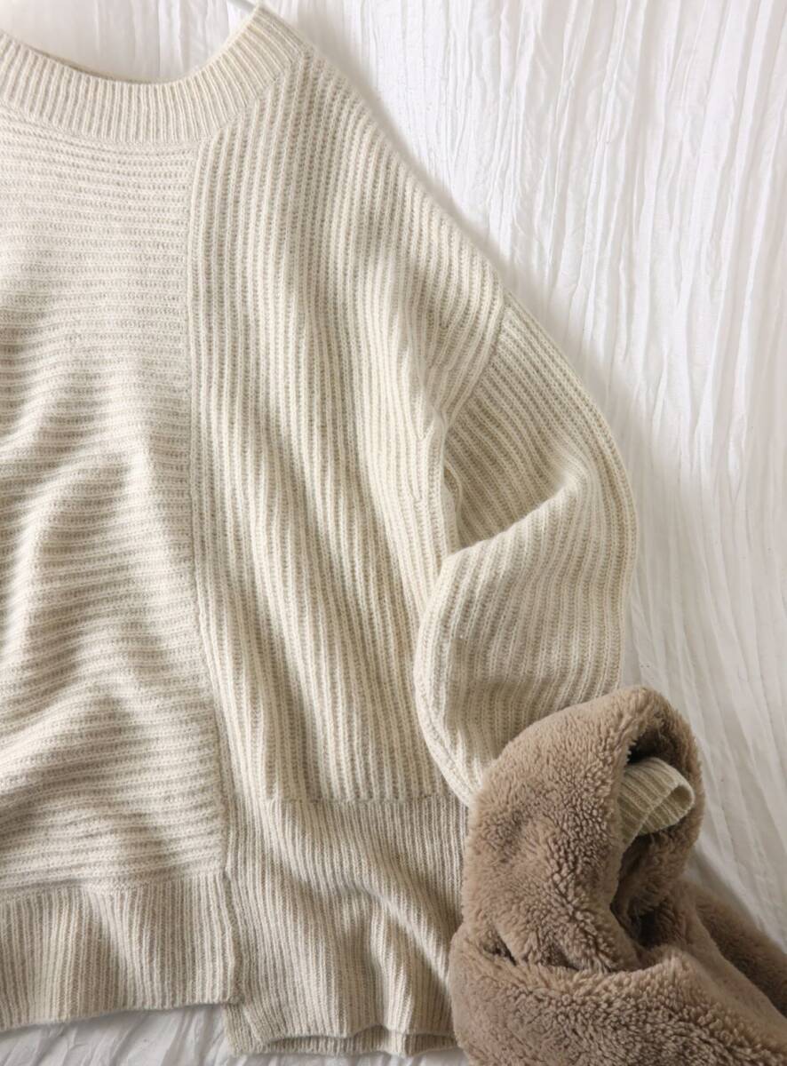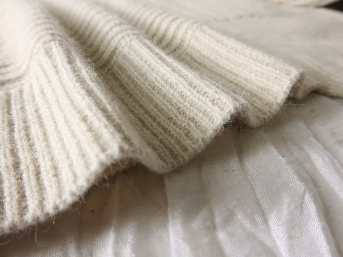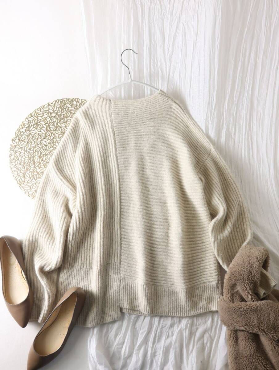 ふわふわのFOXの糸と暖かみのあるアクリル糸をブレンドすることでふんわりと優しい風合いの畦編みニットです。