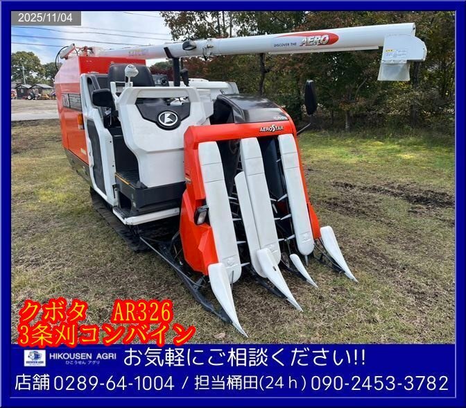 ★★クボタ:AR326①:コンバイン:3条刈:26馬力:グレンタンク:自動水平:車体上下左右:稲刈機:栃木:配送可:AR326①:HIKOUSEN