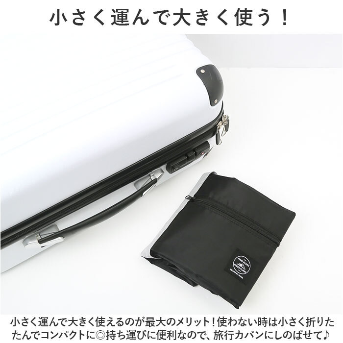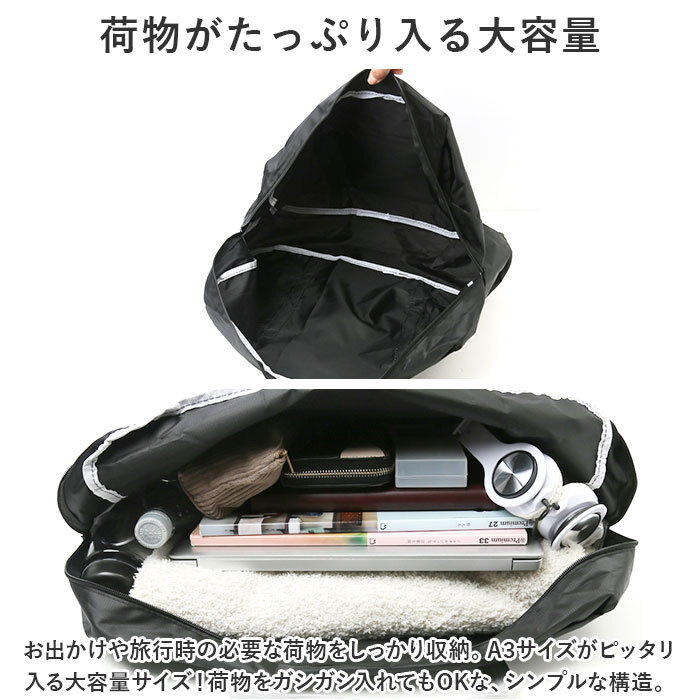 | 商品説明 | ・・旅先で荷物が増えてもOK◎小さく運んで大きく使える!トラベルバッグが登場。 ・【荷物がたっぷり入る大容量】 ・お出かけや旅行時の必要な荷物をしっかり収納。A3サイズがピッタリ入る大容量サイズ!荷物をガシガシ入れてもOKな、シンプルな構造。 ・【小さく運んで大きく使う!】 ・小さく運んで大きく使えるのが最大のメリット!使わない時は小さく折りたたんでコンパクトに◎持ち運びに便利なので、旅行カバンにしのばせて♪ ・【嬉しい軽量設計】 ・嬉しい軽量設計!重さを気にせずに持ち歩ける♪旅先で荷物が増えてしまった時のサブバックとして重宝。 ・【キャリーオン機能搭載】 ・キャリケースのハンドルに通せるファスナーポケットを背面に配置。キャリケースと一緒に移動でき飛行機や遠征の際の持ち運びもスムーズに。 ・【様々なシーンで活躍】 ・旅行用だけでなくまとめ買い時のエコバックなど、様々なシーンで活躍。 |