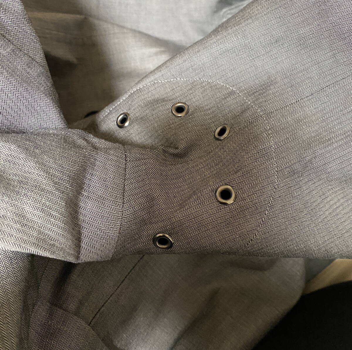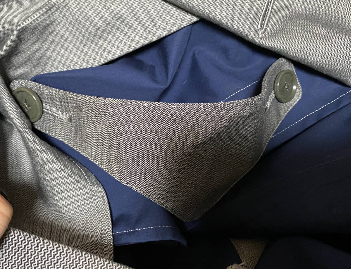 寒すぎる時の襟元を止めるベルトもコートの内側にボタン留めでついております。