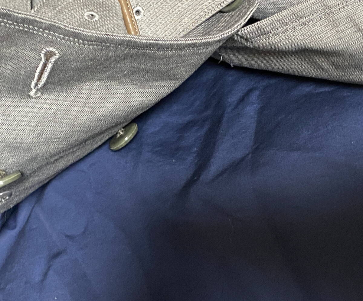 ライナー装着時の裏地はグリーンチェック、ライナーを外した時の裏地はネイビーです。