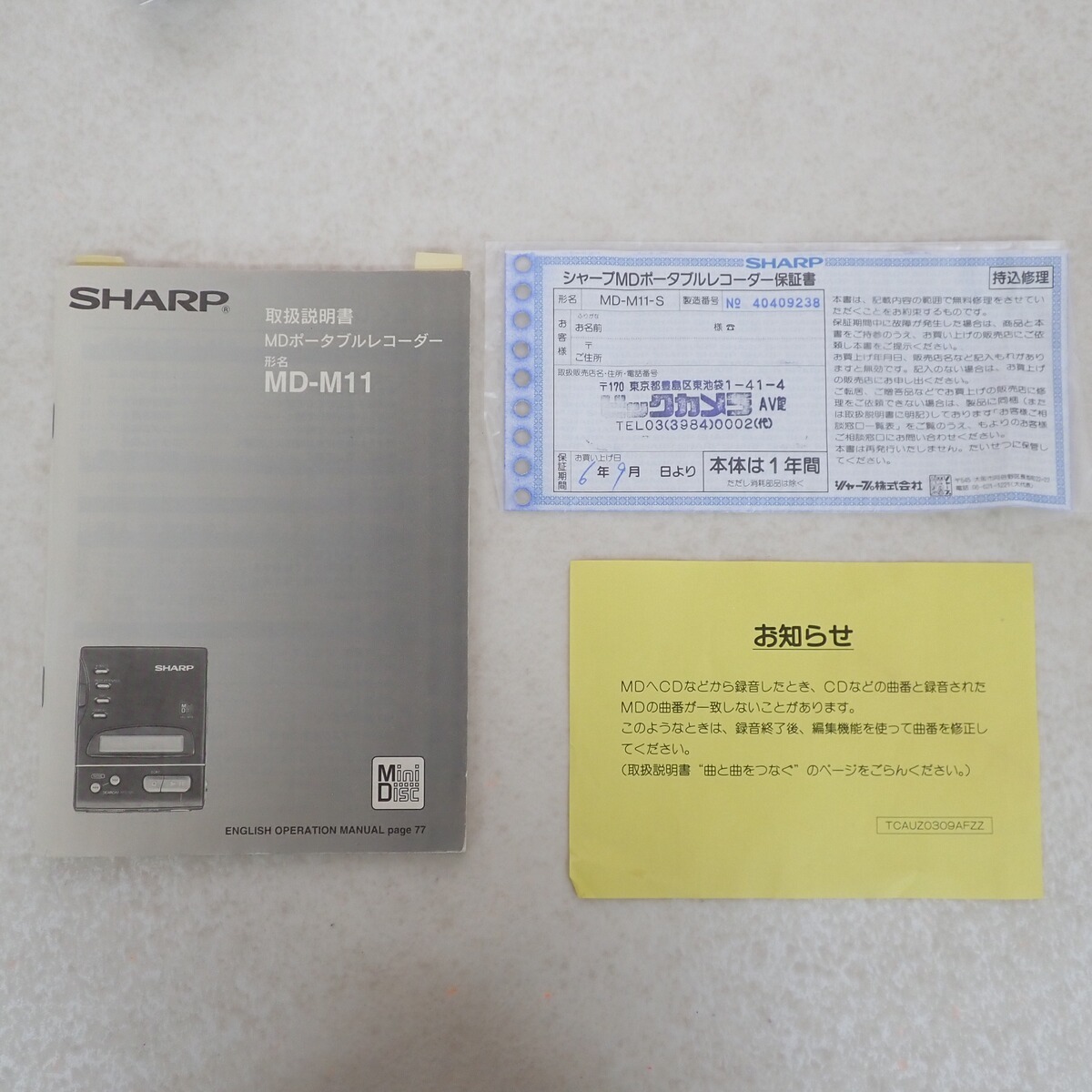 | 通電のみ SHARP MD-M11-S MDポータブルレコーダー シルバー 取説+元箱付 付属品揃 シャープ | ||||||||||||||