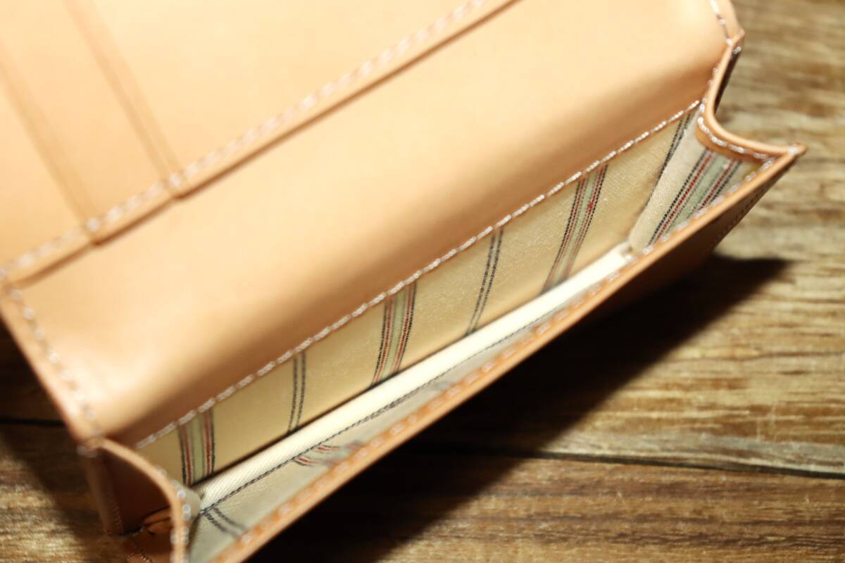 内部にヘラが付いた二つ折り財布でより多くのカードポケットを用意しております。