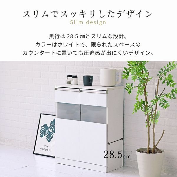 【カラー】 ホワイト 【サイズ】 <外寸> 幅60×奥行28.5×高さ75 <内寸> 扉内:幅52(最大56)×奥行17(最大23)×高さ64.5(最大66)cm 可動棚:幅56×奥行22.5×厚み1.8cm(3.2cmピッチ13穴) 【材質】 本体:プリント紙化粧合板 天板・前板:合成樹脂化粧繊維板(PVC) 【耐荷重】 天板:(約)10kg以下 可動棚:(約)5kg以下 固定棚:(約)5kg以下 【生産国】 中国 【梱包】 サイズ:80.3×34×19cm、重量:17.6kg 【その他】 ・背面化粧あり ・可動棚3枚 ・前板鏡面仕上げ 【組み立て品】 お客様による組み立てが必要です。 【ご注意】 ・サイズ、重量は概算です。 ・商品カラーはご使用のモニターによって実際の明るさや色と異なって見える場合がございます。 |