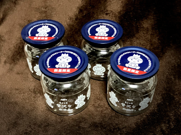 | ------------------------------------------------------------------------ ж ж ж 商品について ж ж ж ------------------------------------------------------------------------ ◆ 『 ちょっと贅沢な珈琲店 イラストレーター「COFFEE BOY」コラボデザイン入り スペシャル・ブレンド瓶 』 X 同じもの4個 コーヒーが入っていた使用済みの空き瓶です。 店舗陳列時 及び 使用時のスレ、キズ、汚れ、などがあります。 フタ部分のイラストなどは シールが貼られているようですが、うまくはがせる自信がないので はがしておりません。 いずれも 入手より経年しており、記載以外にも 初期、経年 による劣化、及び 保管時、取り扱い時などのダメージ必至です。 ※ 商品は 画像1枚目のもので全てです。コーヒーは含まれません。 ※ 自身が 当時 新品で購入した ワンオーナー品です。 ※ 画像は 実物よりきれいに写ってしまう部分があります。 また、最初の検品・出品から 時間が経っているものは、掲載画像・説明にはない 劣化 及び ダメージの増加 など 必至です。商品状態は現物優先です。 ※ ペットなし、非喫煙環境です。 |