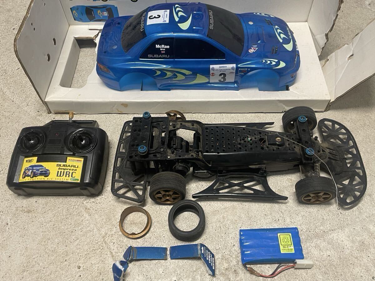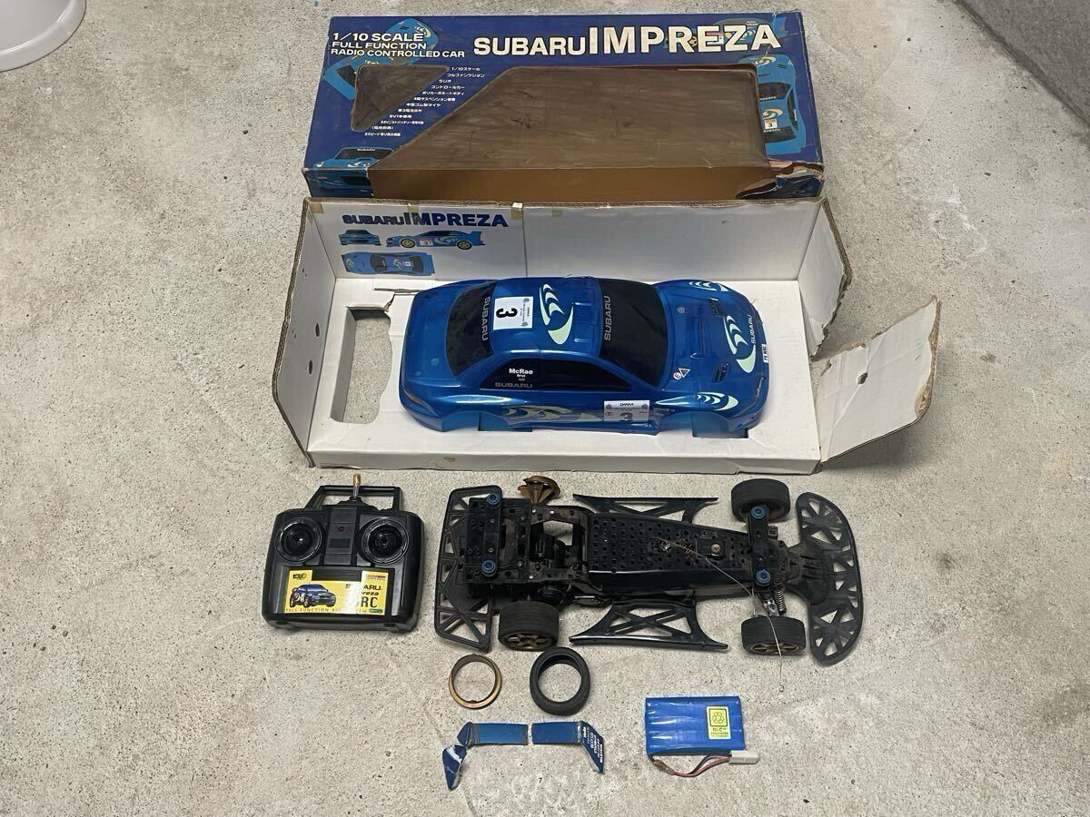 即決で送料込みのトイコー 製スバル インプレッサ ラジコン 1/10 です。gc8 gf8 22bなどのオーナーさん、ガレージなどの飾りにどうですか。状態はボディが割れや欠けがあり、動作も不明です。ウイングは社外品で粉々になってますし、バッテリーもコードが途中切れています。完全 ジャンク品 部品取りです。当時の箱付きです。送料無料です。送料だけでもかなりかかりますのでお買い得です。